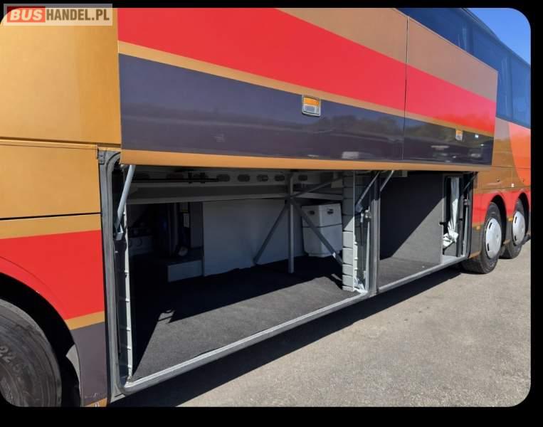 : video, WC, lodówka, caffebar, kabina sypialna, fotele odchylane, oświetlenie indywidualne, nawiewy dyszowe, siateczki, ABS, ASR, tempomat, retarder, CD, podnóżki, stoliczki, mikrofon, klimatyzacja, radio, regulacja wysokości nadwozia, centralny zamek, podwójne szyby boczne, wspomaganie kierownicy, elektryczne lusterka, fotele odchylane i rozsuwane, DVD, ogrzewanie stacjonarne, hak holowniczy, ESP