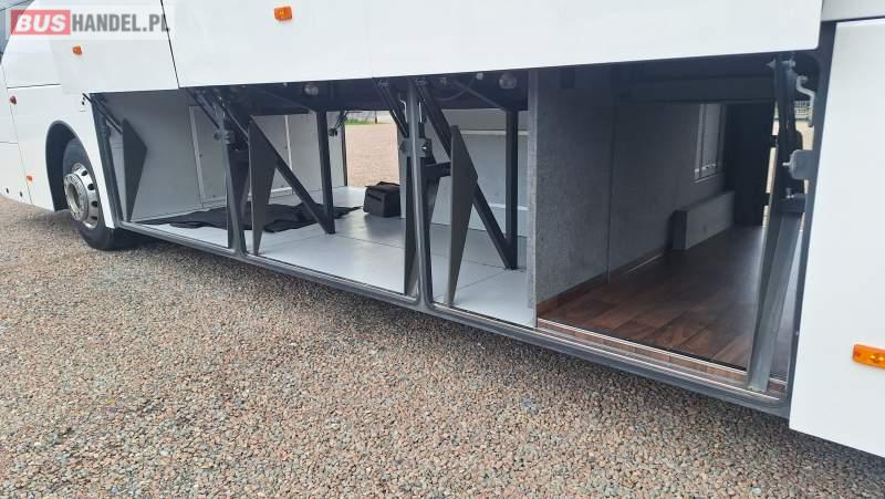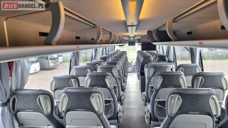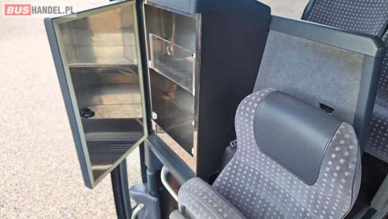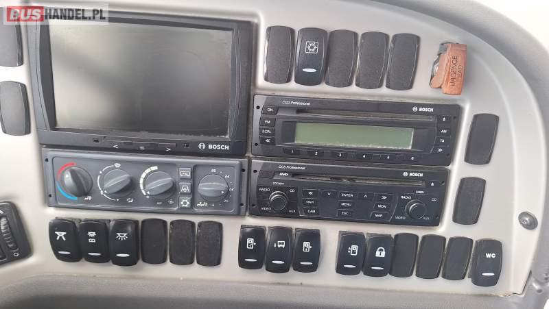 : video, WC, lodówka, kabina sypialna, oświetlenie indywidualne, nawiewy dyszowe, siateczki, ABS, ASR, tempomat, retarder, CD, podnóżki, stoliczki, mikrofon, klimatyzacja, radio, regulacja wysokości nadwozia, centralny zamek, podwójne szyby boczne, wspomaganie kierownicy, elektryczne lusterka, fotele odchylane i rozsuwane, DVD, ogrzewanie stacjonarne, ESP