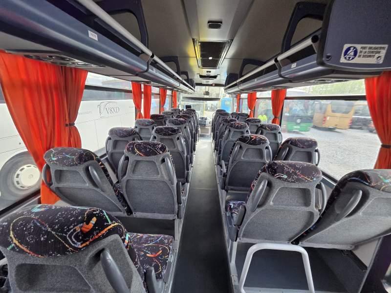 : fotele odchylane, oświetlenie indywidualne, nawiewy dyszowe, ABS, ASR, tempomat, retarder, CD, podnóżki, mikrofon, klimatyzacja, radio, regulacja wysokości nadwozia, podwójne szyby boczne, wspomaganie kierownicy, elektryczne lusterka, ogrzewanie stacjonarne, ESP
