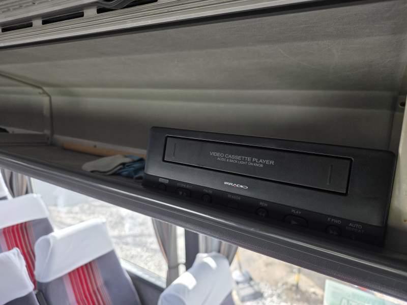 : klimatyzacja, video, lodówka, oświetlenie indywidualne, nawiewy dyszowe, podnóżki, stoliczki, siateczki, ABS, ASR, retarder, mikrofon, radio, fotele odchylane i rozsuwane, regulacja wysokości nadwozia, podwójne szyby boczne, wspomaganie kierownicy, ogrzewanie stacjonarne