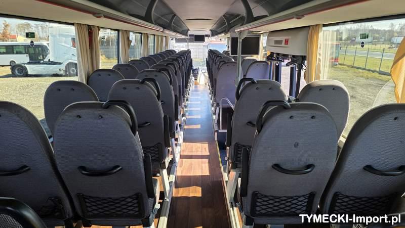 : video, lodówka, fotele odchylane, oświetlenie indywidualne, nawiewy dyszowe, siateczki, ABS, ASR, retarder, nawigacja, CD, podnóżki, mikrofon, klimatyzacja, radio, regulacja wysokości nadwozia, podwójne szyby boczne, wspomaganie kierownicy, elektryczne lusterka, DVD, ogrzewanie stacjonarne, ESP