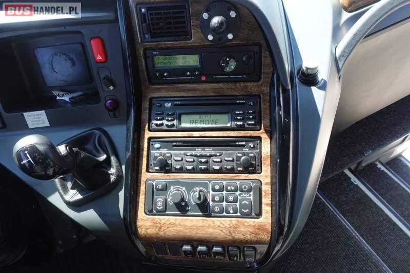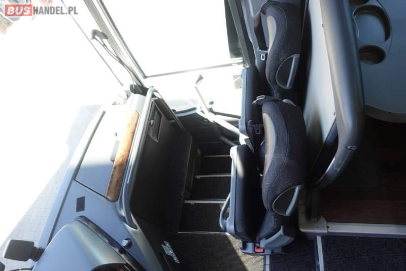 : video, WC, lodówka, kabina sypialna, fotele odchylane, oświetlenie indywidualne, nawiewy dyszowe, siateczki, ABS, ASR, tempomat, retarder, CD, podnóżki, stoliczki, mikrofon, klimatyzacja, radio, regulacja wysokości nadwozia, centralny zamek, podwójne szyby boczne, wspomaganie kierownicy, elektryczne lusterka, fotele odchylane i rozsuwane, DVD, ogrzewanie stacjonarne, ESP