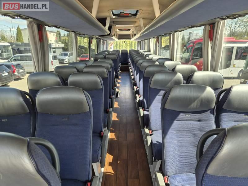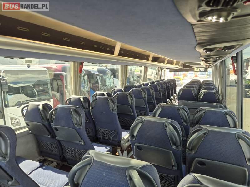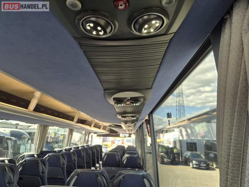 : video, WC, lodówka, fotele odchylane, oświetlenie indywidualne, nawiewy dyszowe, siateczki, ABS, tempomat, retarder, podnóżki, mikrofon, klimatyzacja, radio, regulacja wysokości nadwozia, centralny zamek, podwójne szyby boczne, wspomaganie kierownicy, elektryczne lusterka, DVD, ogrzewanie stacjonarne