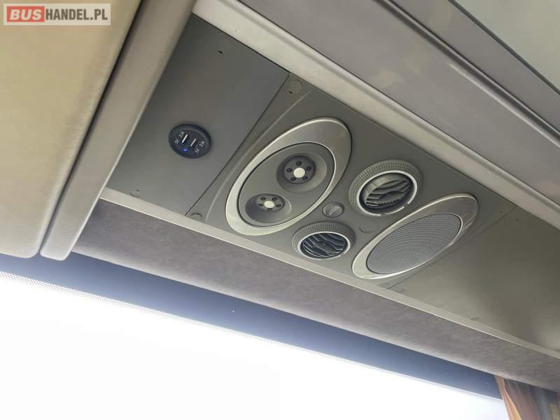 : video, fotele odchylane, nawiewy dyszowe, ABS, ASR, retarder, CD, klimatyzacja, radio, centralny zamek, podwójne szyby boczne, elektryczne lusterka, DVD, ogrzewanie stacjonarne