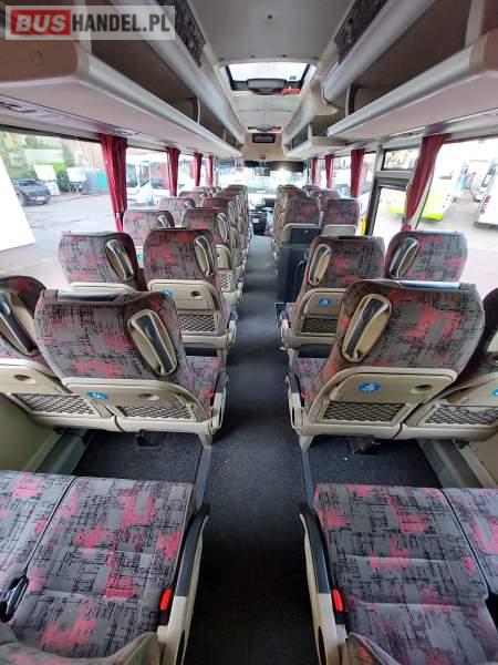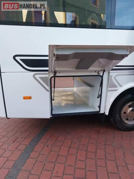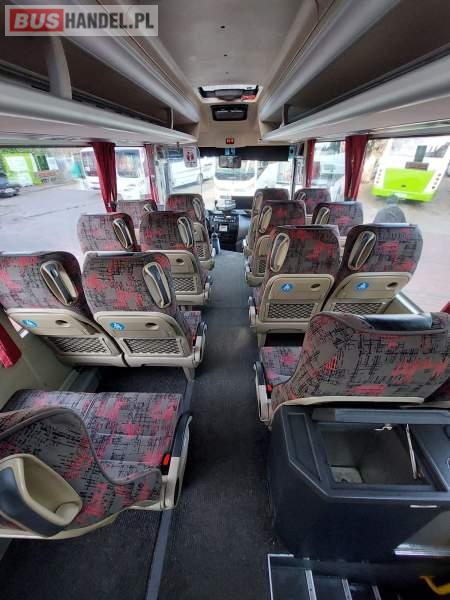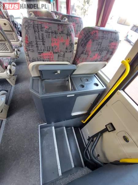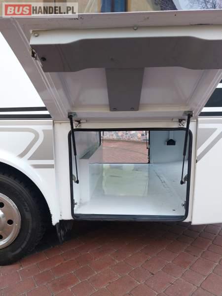 : video, lodówka, oświetlenie indywidualne, nawiewy dyszowe, siateczki, ABS, tempomat, CD, stoliczki, mikrofon, klimatyzacja, radio, centralny zamek, podwójne szyby boczne, wspomaganie kierownicy, elektryczne lusterka, fotele odchylane i rozsuwane, DVD, ogrzewanie stacjonarne, ESP