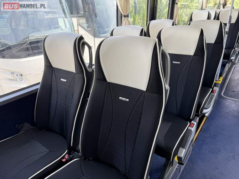 : fotele odchylane, oświetlenie indywidualne, nawiewy dyszowe, siateczki, tempomat, retarder, podnóżki, klimatyzacja, radio, rampa dla inwalidów, regulacja wysokości nadwozia, podwójne szyby boczne, wspomaganie kierownicy, elektryczne lusterka, fotele odchylane i rozsuwane, ogrzewanie stacjonarne