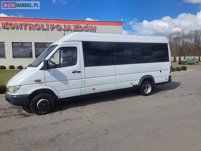 Sprzedam Autobus Mercedes sprinter model 416 poj. silnika 2. 7 cdi, zarejestrowany na 20 osób, klimatyzacja z rozprowadzeniem na tył pojazdu sprawna nowa chłodnica i kompresor klimatyzacji, dodatkowe ogrzewanie na tył pojazdu. 2x poduszka powietrzna, el. szyby, el. lusterka, 2 szyberdachy, półka, poręcz, bardzo ładny zadbany środek auta. Opony zimowe 90% bierznika. Technicznie w bardzo dobrym stanie, opłaty aktualne. Pojazd do poprawek blacharko lakierniczych. Sprzedający: