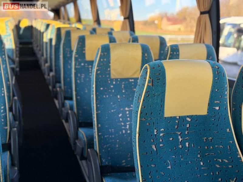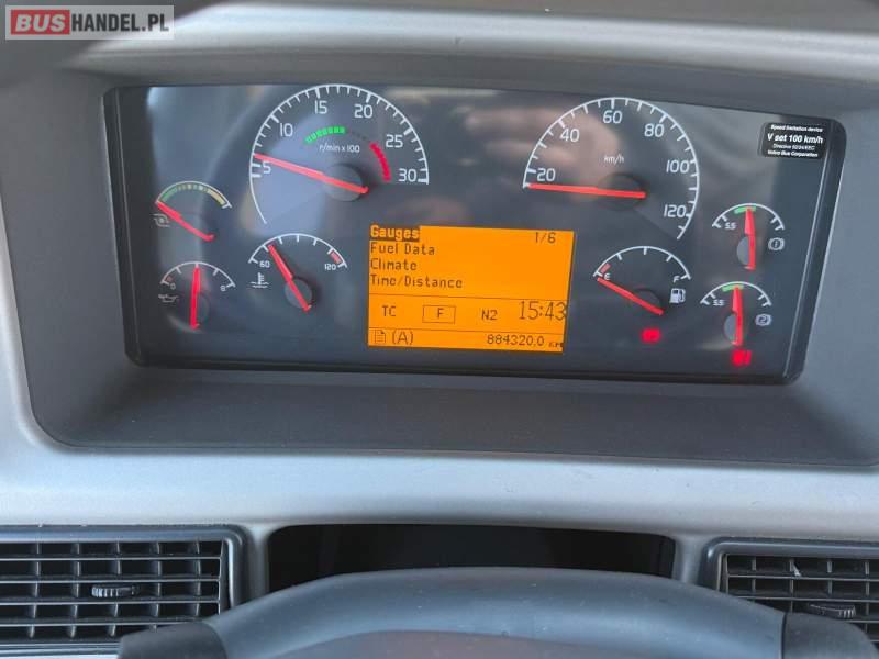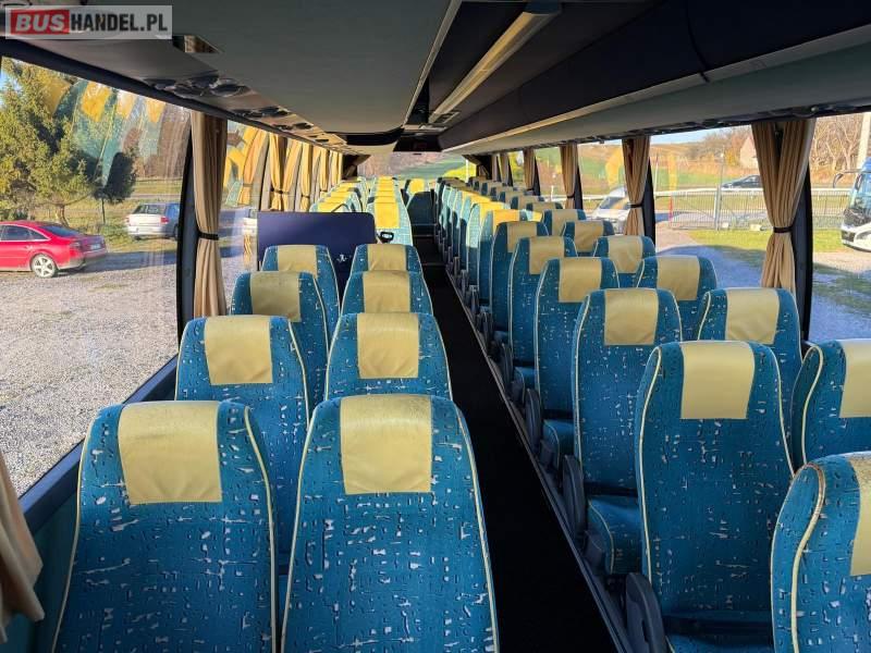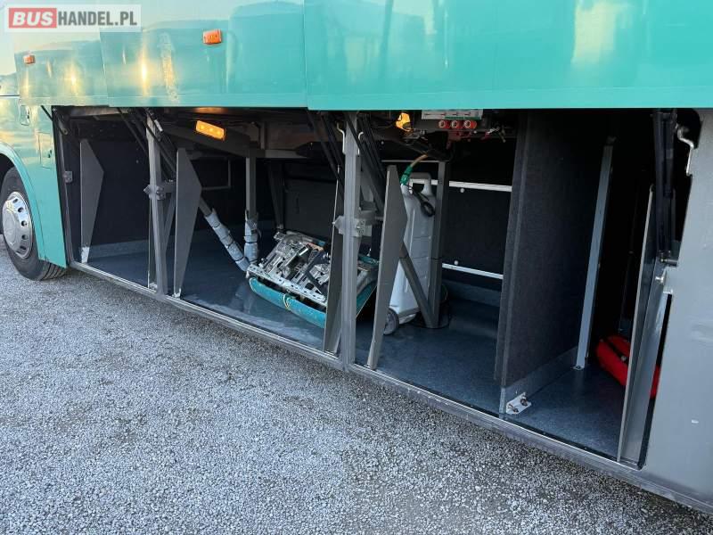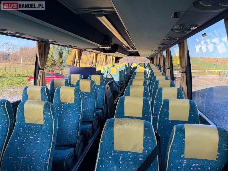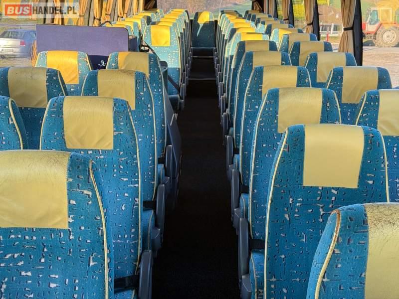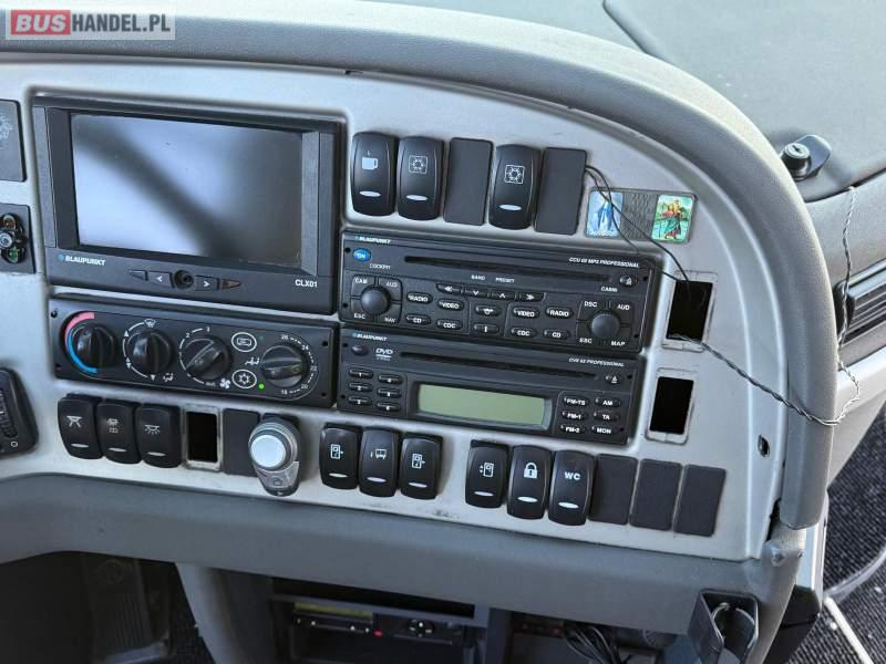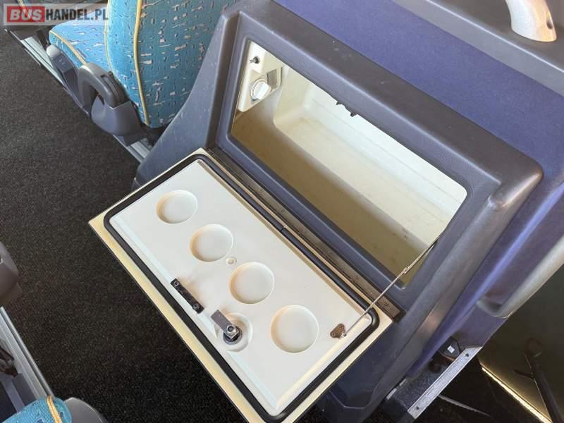 : video, WC, lodówka, caffebar, kabina sypialna, oświetlenie indywidualne, nawiewy dyszowe, siateczki, ABS, ASR, tempomat, retarder, CD, podnóżki, stoliczki, mikrofon, klimatyzacja, radio, regulacja wysokości nadwozia, centralny zamek, podwójne szyby boczne, wspomaganie kierownicy, elektryczne lusterka, fotele odchylane i rozsuwane, DVD, ogrzewanie stacjonarne, ESP