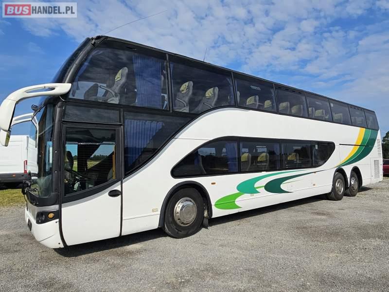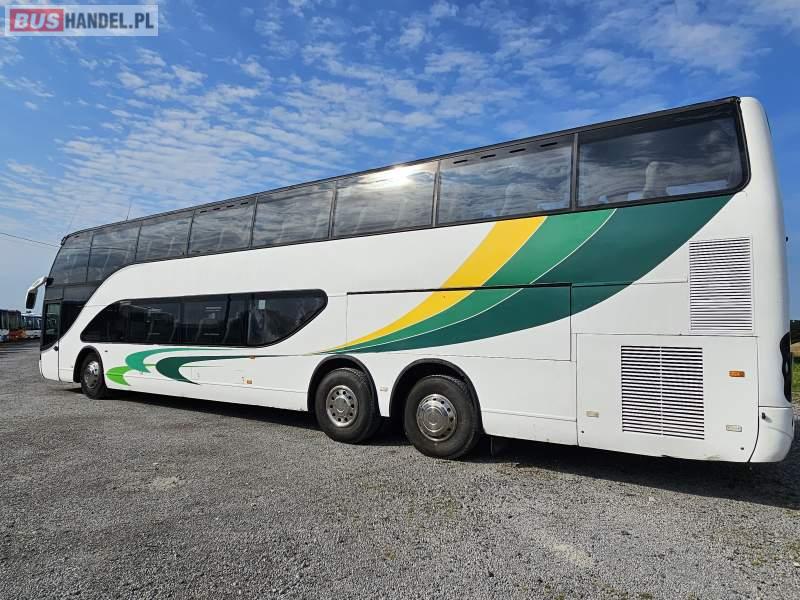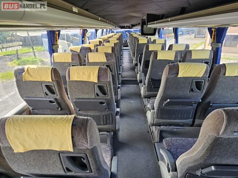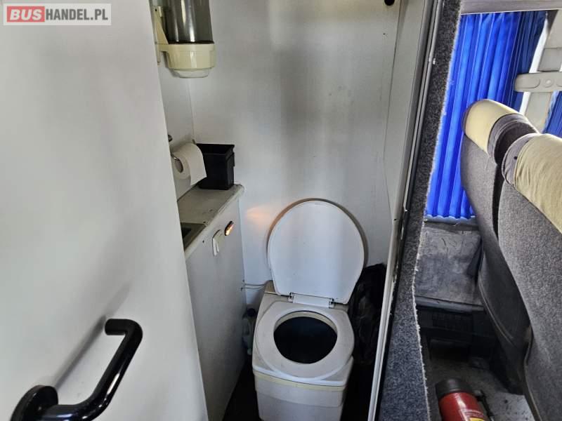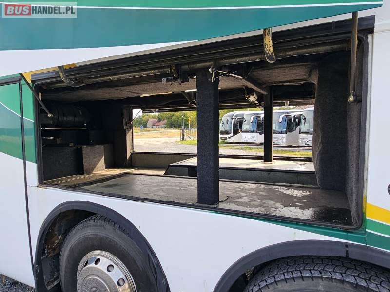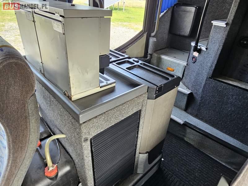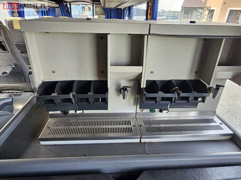 : video, WC, lodówka, caffebar, kabina sypialna, fotele odchylane, oświetlenie indywidualne, nawiewy dyszowe, ABS, ASR, retarder, CD, podnóżki, mikrofon, klimatyzacja, radio, regulacja wysokości nadwozia, podwójne szyby boczne, wspomaganie kierownicy, elektryczne lusterka, DVD, ogrzewanie stacjonarne
