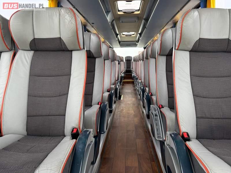 : video, WC, lodówka, caffebar, kabina sypialna, oświetlenie indywidualne, nawiewy dyszowe, siateczki, ABS, ASR, tempomat, retarder, CD, podnóżki, stoliczki, mikrofon, klimatyzacja, radio, regulacja wysokości nadwozia, centralny zamek, podwójne szyby boczne, wspomaganie kierownicy, elektryczne lusterka, fotele odchylane i rozsuwane, DVD, ogrzewanie stacjonarne, ESP