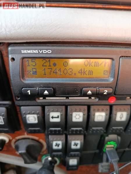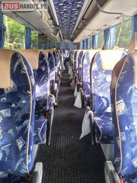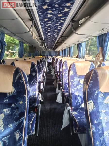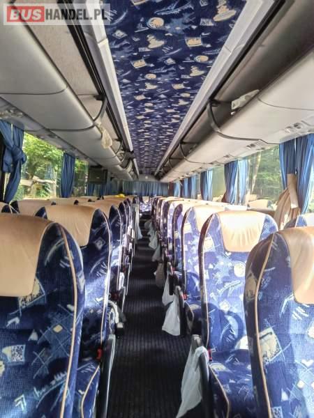 : video, WC, lodówka, caffebar, kabina sypialna, oświetlenie indywidualne, nawiewy dyszowe, siateczki, ABS, ASR, tempomat, retarder, CD, podnóżki, stoliczki, mikrofon, klimatyzacja, radio, regulacja wysokości nadwozia, centralny zamek, podwójne szyby boczne, wspomaganie kierownicy, elektryczne lusterka, fotele odchylane i rozsuwane, DVD, ogrzewanie stacjonarne