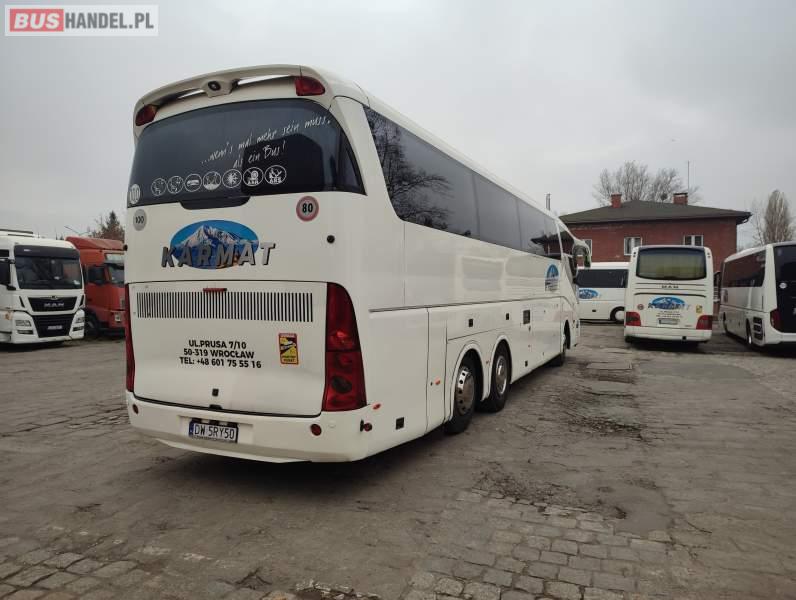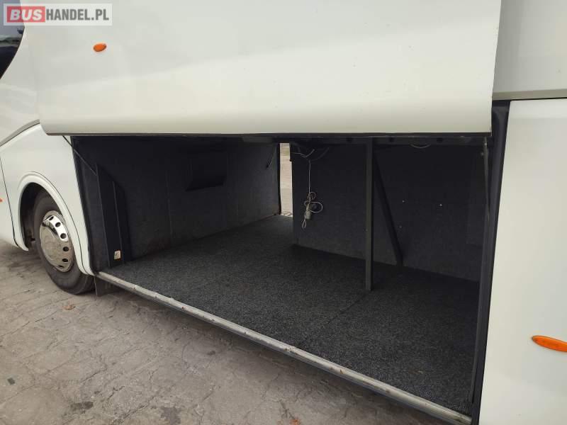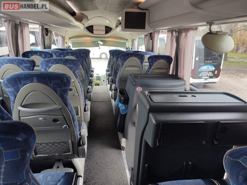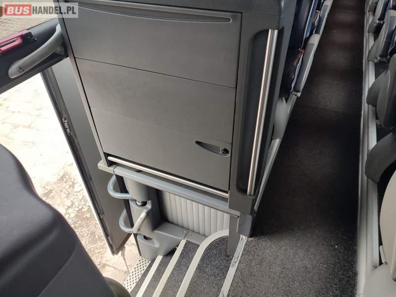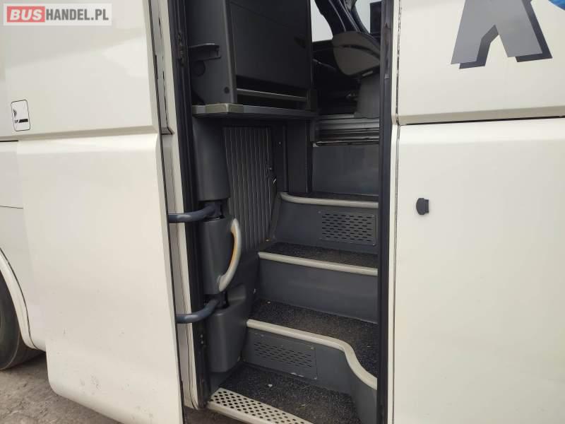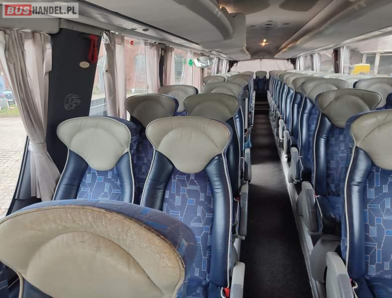 : video, WC, lodówka, caffebar, kabina sypialna, fotele odchylane, oświetlenie indywidualne, nawiewy dyszowe, siateczki, ABS, ASR, tempomat, retarder, nawigacja, CD, podnóżki, stoliczki, mikrofon, klimatyzacja, radio, sejf, regulacja wysokości nadwozia, centralny zamek, podwójne szyby boczne, wspomaganie kierownicy, elektryczne lusterka, fotele odchylane i rozsuwane, DVD, ogrzewanie stacjonarne, ESP