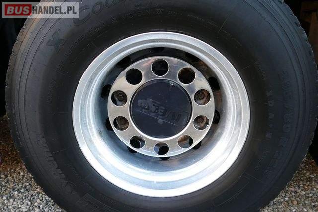 : lodówka, oświetlenie indywidualne, ABS, ASR, tempomat, retarder, CD, podnóżki, mikrofon, klimatyzacja, radio, regulacja wysokości nadwozia, centralny zamek, podwójne szyby boczne, wspomaganie kierownicy, elektryczne lusterka, fotele odchylane i rozsuwane, DVD, ogrzewanie stacjonarne, ESP