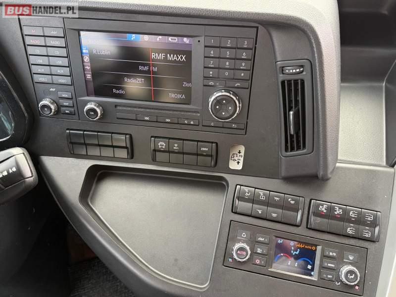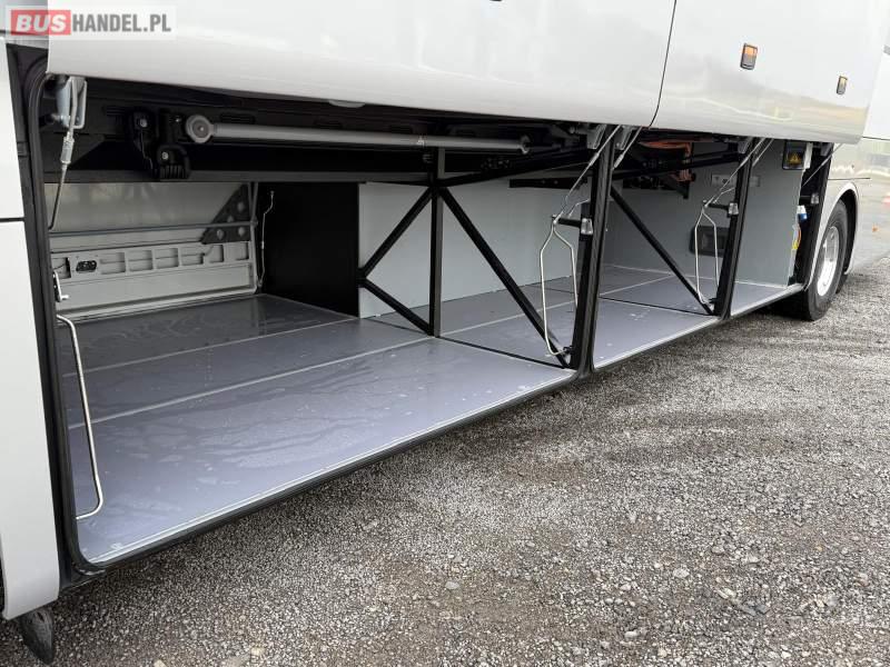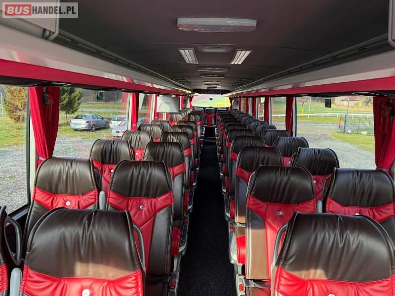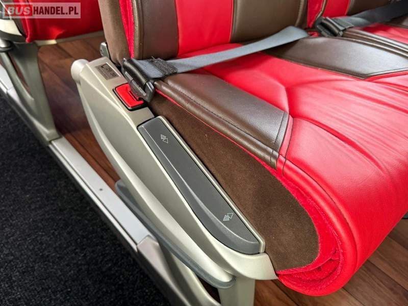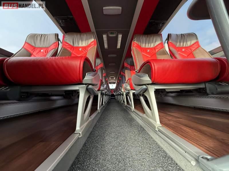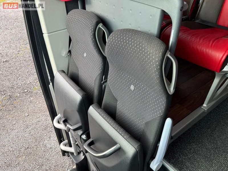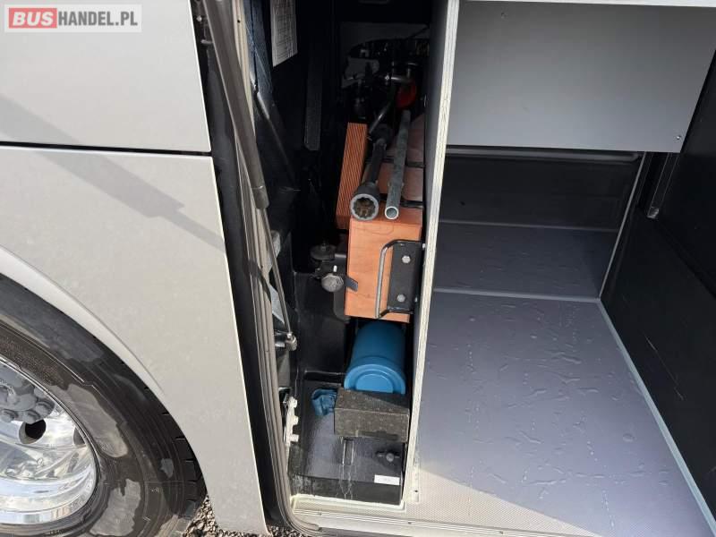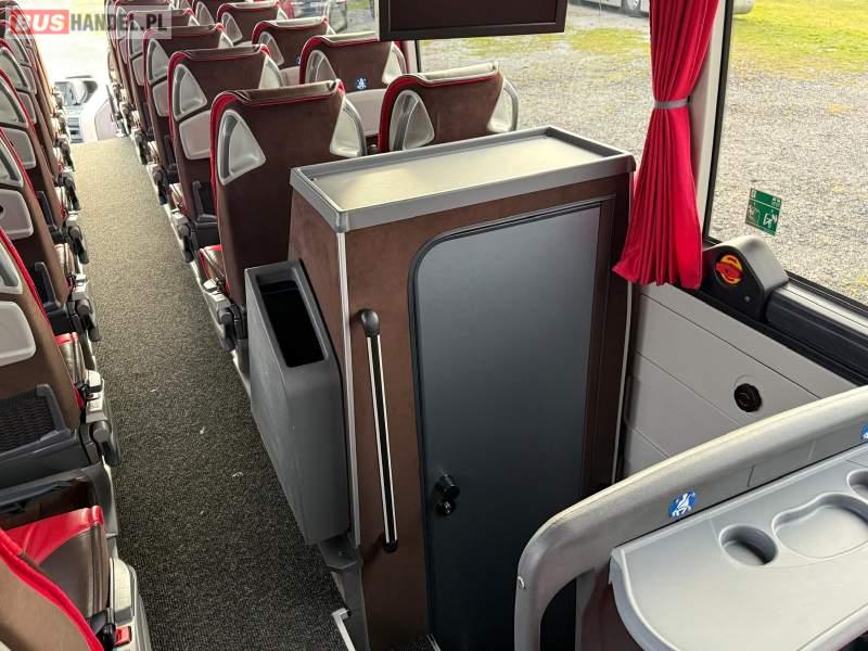 : video, WC, lodówka, kabina sypialna, oświetlenie indywidualne, nawiewy dyszowe, siateczki, ABS, ASR, tempomat, retarder, nawigacja, CD, podnóżki, stoliczki, mikrofon, radio, sejf, regulacja wysokości nadwozia, centralny zamek, podwójne szyby boczne, wspomaganie kierownicy, elektryczne lusterka, aluminiowe felgi, fotele odchylane i rozsuwane, DVD, ogrzewanie stacjonarne, hak holowniczy, ESP