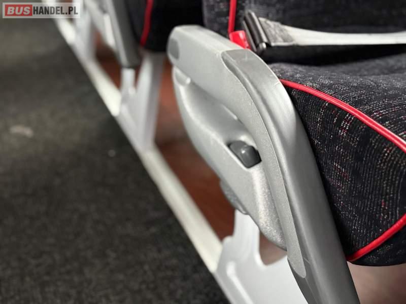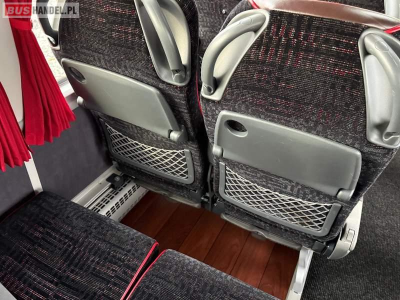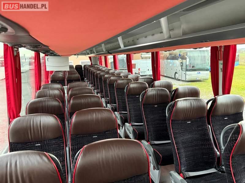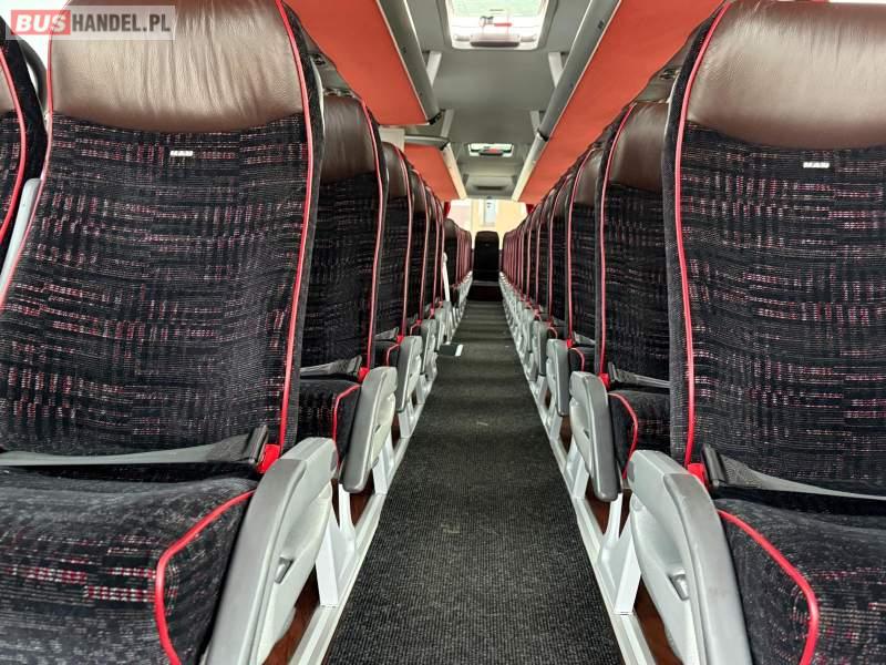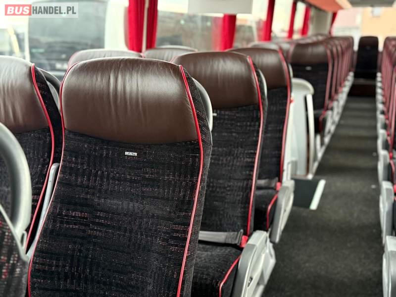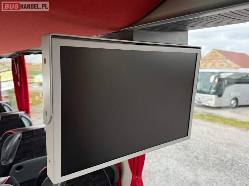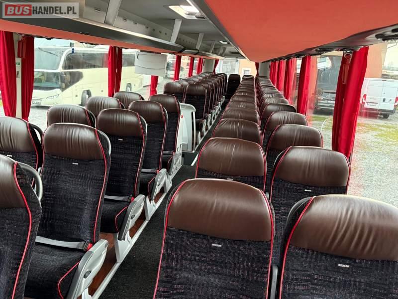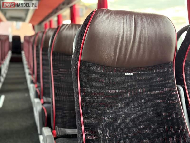 : video, WC, lodówka, kabina sypialna, oświetlenie indywidualne, nawiewy dyszowe, siateczki, ABS, ASR, tempomat, retarder, nawigacja, CD, podnóżki, stoliczki, mikrofon, klimatyzacja, radio, regulacja wysokości nadwozia, centralny zamek, podwójne szyby boczne, wspomaganie kierownicy, elektryczne lusterka, aluminiowe felgi, fotele odchylane i rozsuwane, DVD, ogrzewanie stacjonarne, ESP
