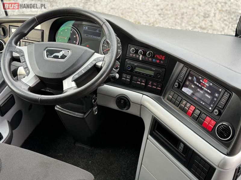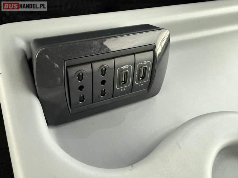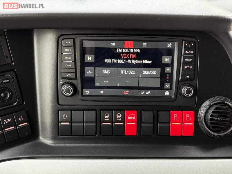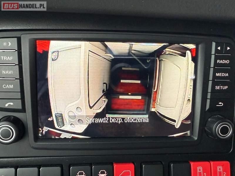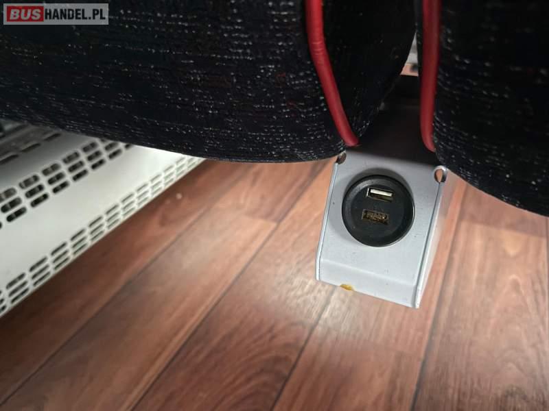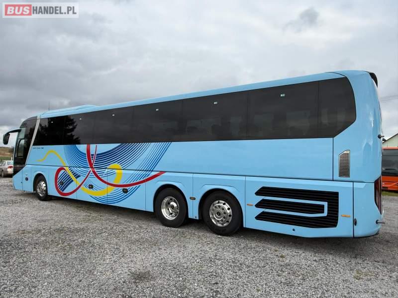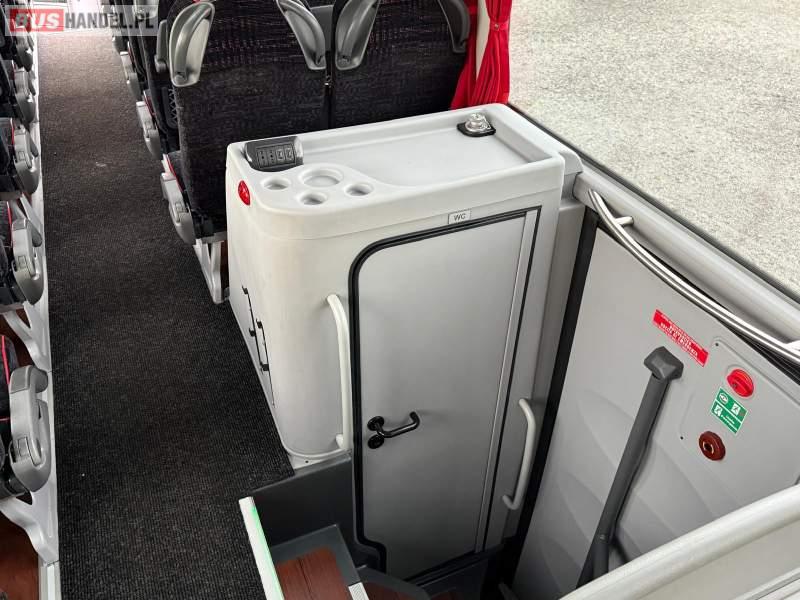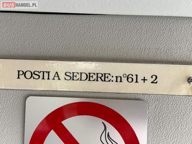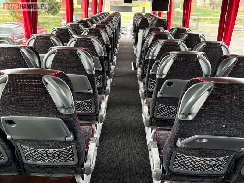 : video, WC, lodówka, kabina sypialna, oświetlenie indywidualne, nawiewy dyszowe, siateczki, ABS, ASR, tempomat, retarder, nawigacja, CD, podnóżki, stoliczki, mikrofon, klimatyzacja, radio, regulacja wysokości nadwozia, centralny zamek, podwójne szyby boczne, wspomaganie kierownicy, elektryczne lusterka, aluminiowe felgi, fotele odchylane i rozsuwane, DVD, ogrzewanie stacjonarne, ESP