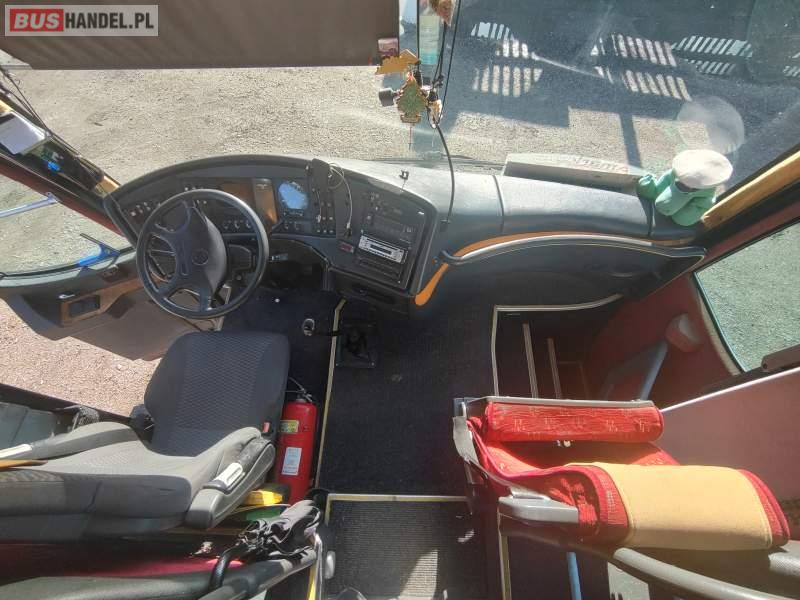 : WC, lodówka, caffebar, fotele odchylane, nawiewy dyszowe, ABS, tempomat, retarder, podnóżki, stoliczki, mikrofon, klimatyzacja, radio, regulacja wysokości nadwozia, podwójne szyby boczne, wspomaganie kierownicy, ogrzewanie stacjonarne