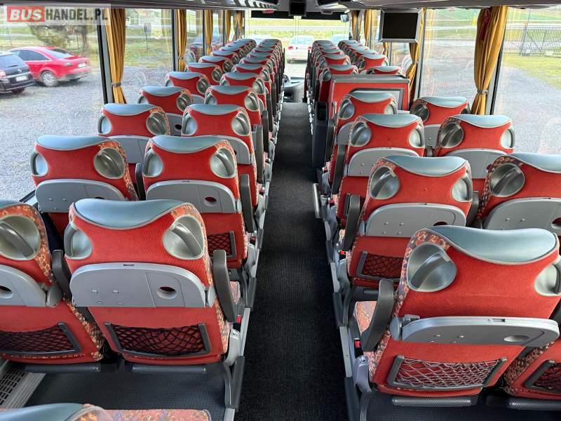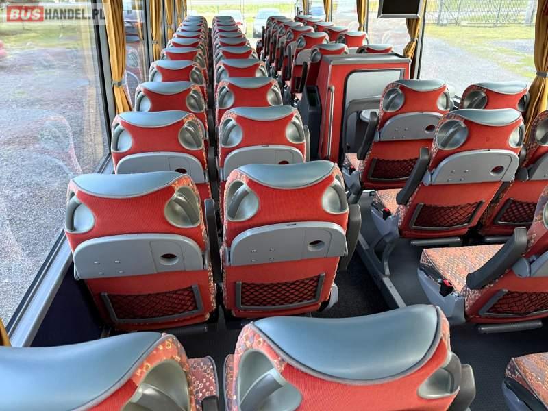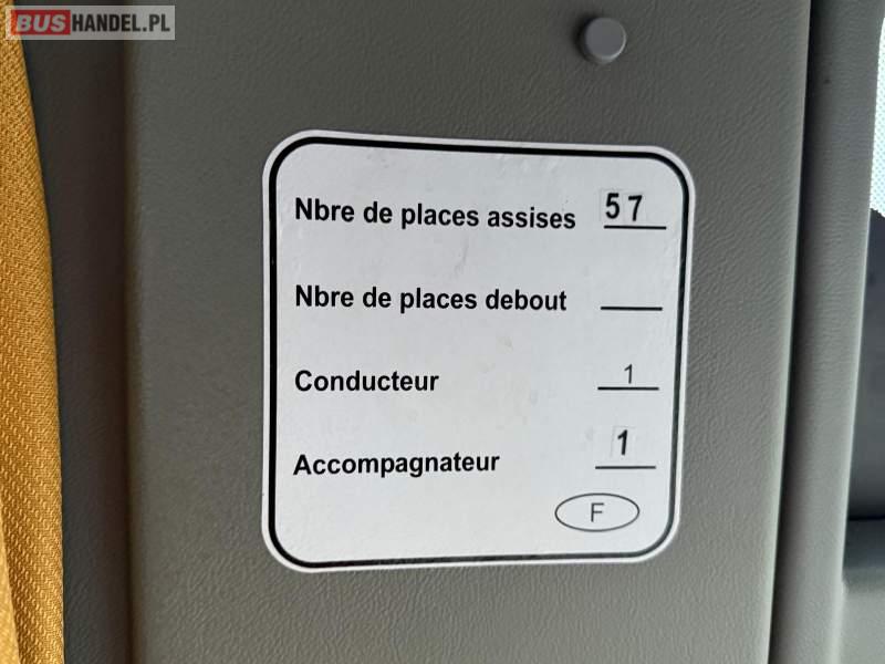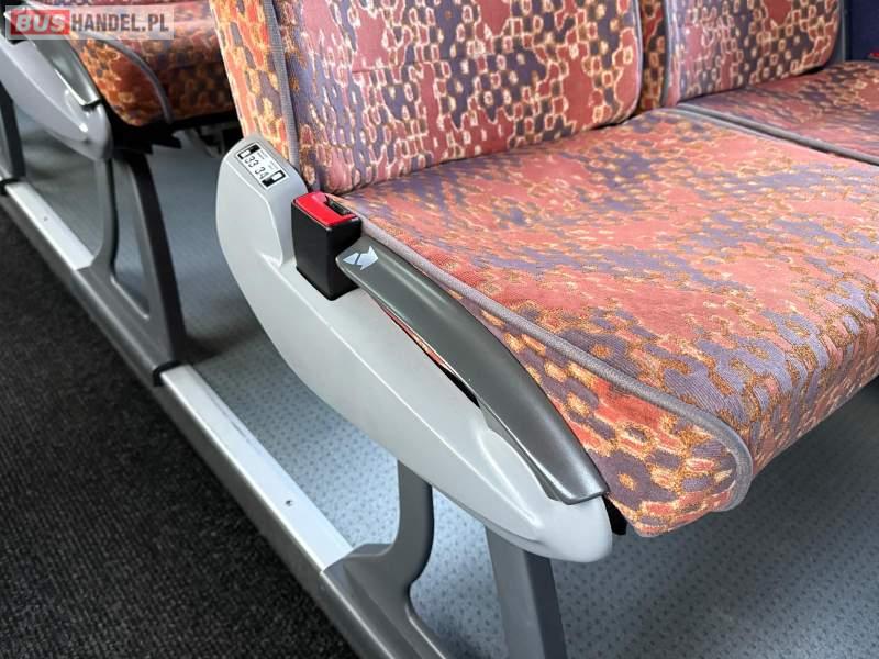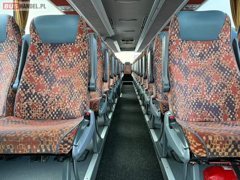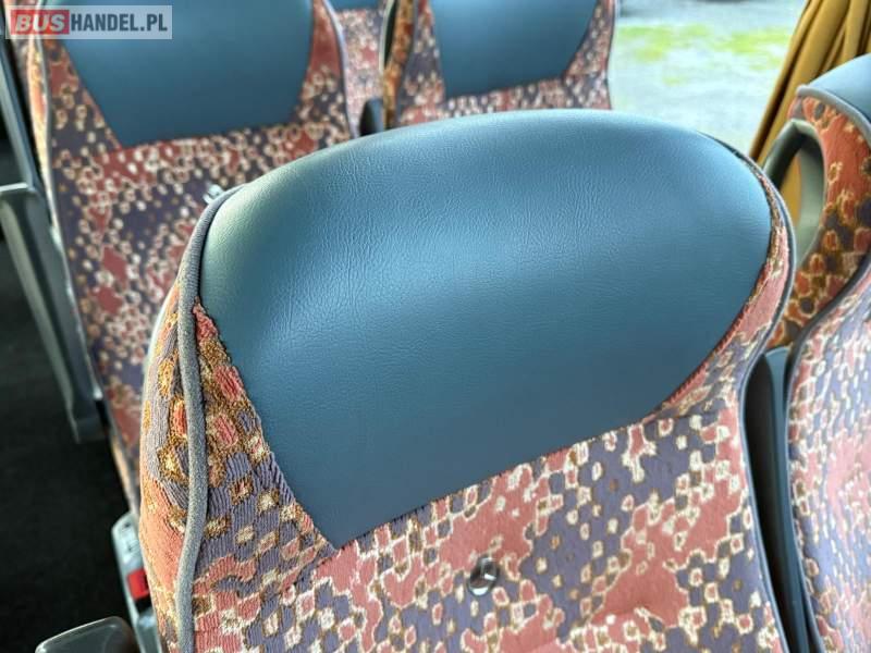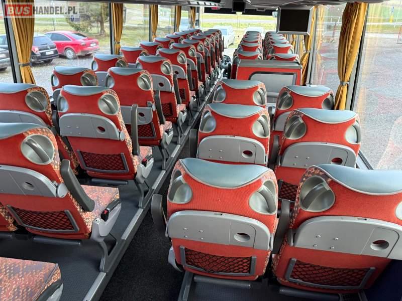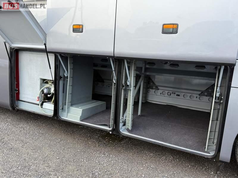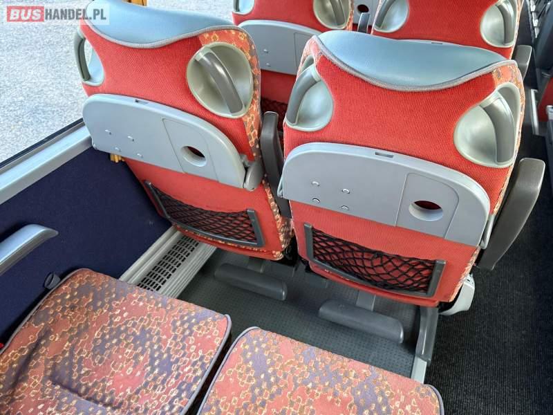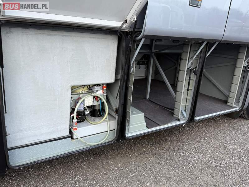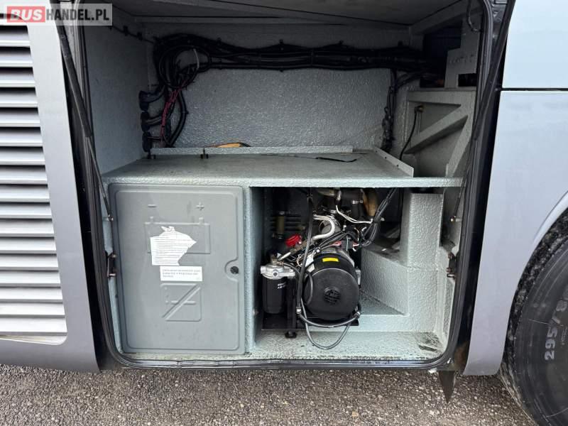 : video, WC, lodówka, fotele odchylane, oświetlenie indywidualne, nawiewy dyszowe, siateczki, ABS, ASR, tempomat, retarder, CD, podnóżki, stoliczki, mikrofon, klimatyzacja, radio, regulacja wysokości nadwozia, centralny zamek, podwójne szyby boczne, wspomaganie kierownicy, elektryczne lusterka, aluminiowe felgi, DVD, ogrzewanie stacjonarne, ESP