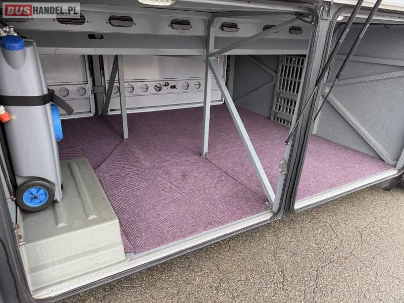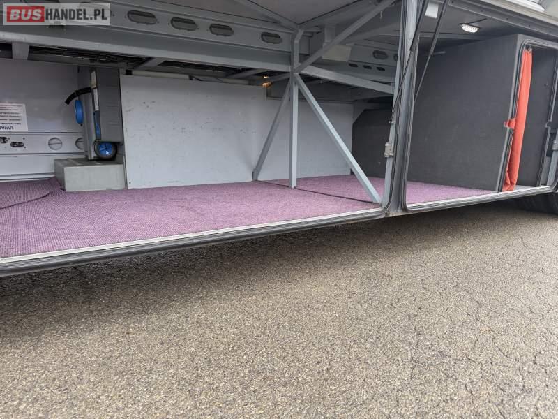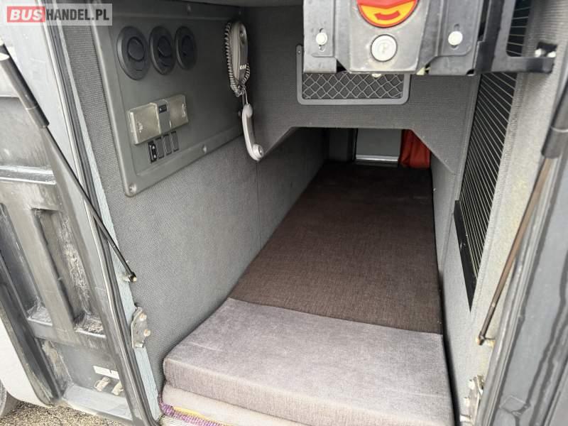 : WC, lodówka, caffebar, kabina sypialna, oświetlenie indywidualne, nawiewy dyszowe, siateczki, ABS, ASR, tempomat, retarder, podnóżki, stoliczki, mikrofon, klimatyzacja, radio, sejf, regulacja wysokości nadwozia, centralny zamek, podwójne szyby boczne, wspomaganie kierownicy, elektryczne lusterka, fotele odchylane i rozsuwane, DVD, ogrzewanie stacjonarne, ESP