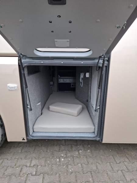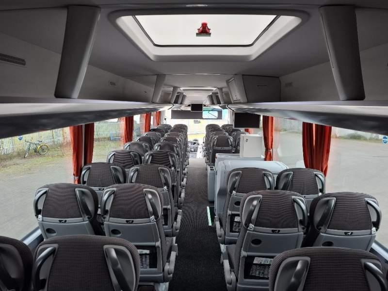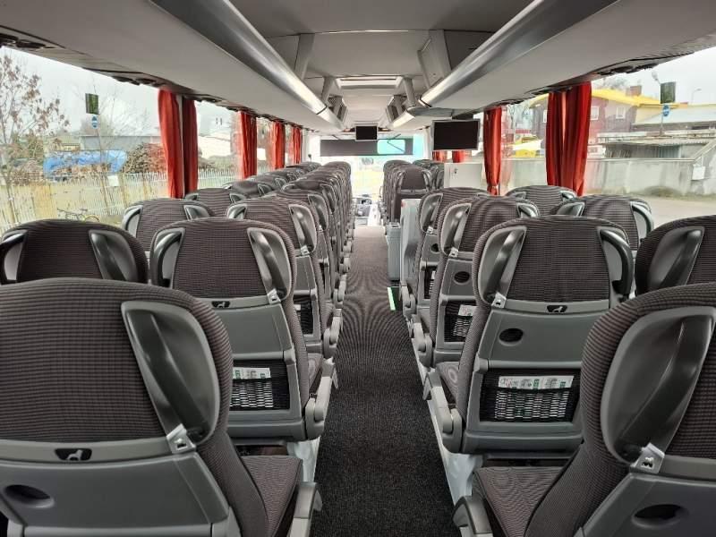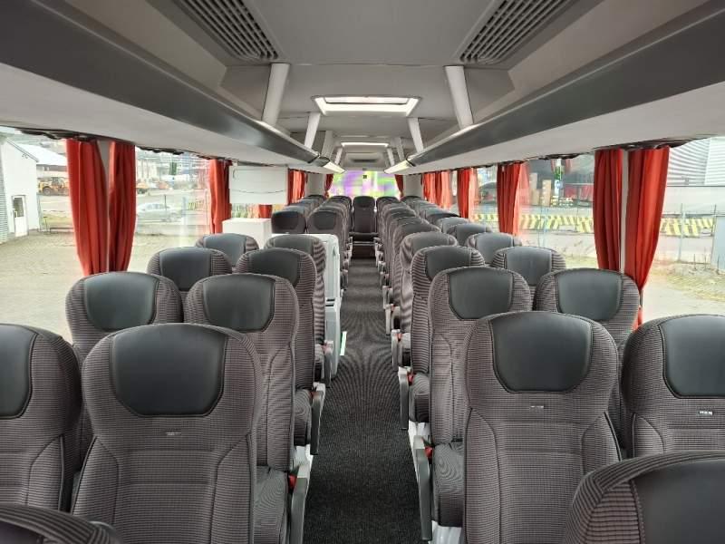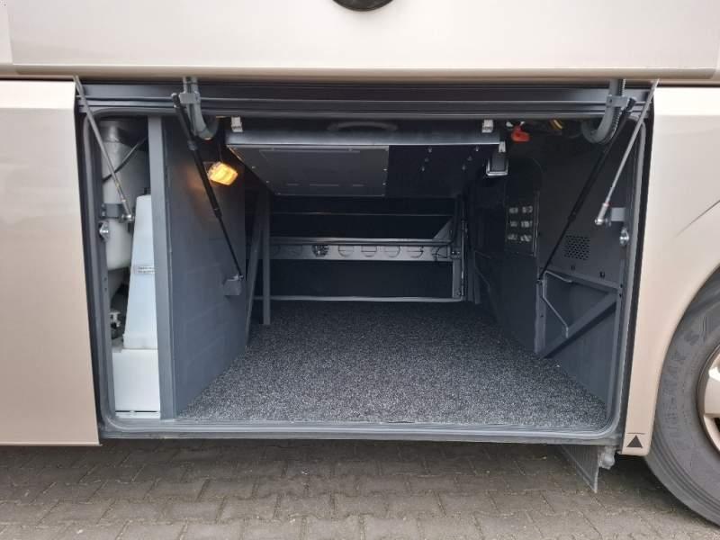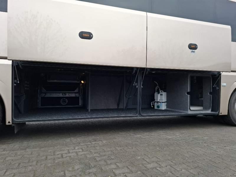 : WC, lodówka, caffebar, kabina sypialna, oświetlenie indywidualne, nawiewy dyszowe, siateczki, ABS, ASR, tempomat, retarder, nawigacja, podnóżki, stoliczki, mikrofon, klimatyzacja, radio, sejf, regulacja wysokości nadwozia, centralny zamek, podwójne szyby boczne, wspomaganie kierownicy, elektryczne lusterka, fotele odchylane i rozsuwane, ogrzewanie stacjonarne, hak holowniczy, ESP