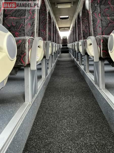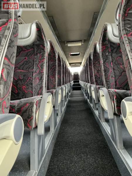 : WC, lodówka, kabina sypialna, fotele odchylane, oświetlenie indywidualne, nawiewy dyszowe, siateczki, ABS, ASR, tempomat, retarder, nawigacja, CD, podnóżki, stoliczki, mikrofon, klimatyzacja, radio, regulacja wysokości nadwozia, centralny zamek, podwójne szyby boczne, wspomaganie kierownicy, elektryczne lusterka, DVD, ogrzewanie stacjonarne, ESP