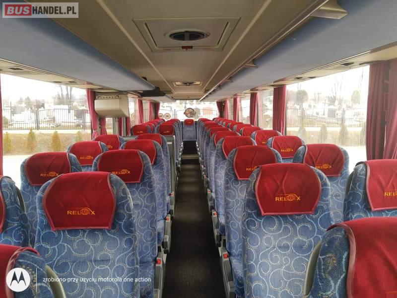 : video, WC, lodówka, kabina sypialna, fotele odchylane, nawiewy dyszowe, ABS, ASR, retarder, CD, mikrofon, klimatyzacja, radio, centralny zamek, podwójne szyby boczne, wspomaganie kierownicy, elektryczne lusterka, DVD, ogrzewanie stacjonarne
