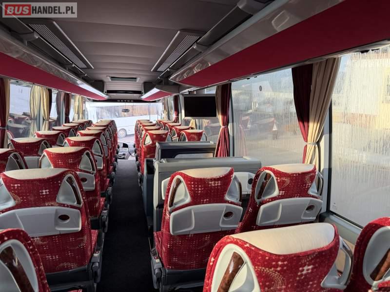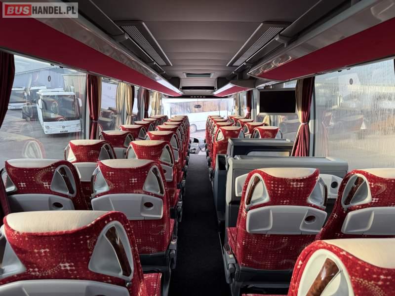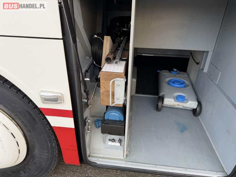 : WC, lodówka, caffebar, oświetlenie indywidualne, nawiewy dyszowe, siateczki, ABS, ASR, tempomat, retarder, podnóżki, stoliczki, mikrofon, klimatyzacja, sejf, regulacja wysokości nadwozia, centralny zamek, podwójne szyby boczne, wspomaganie kierownicy, elektryczne lusterka, fotele odchylane i rozsuwane, DVD, ogrzewanie stacjonarne, ESP