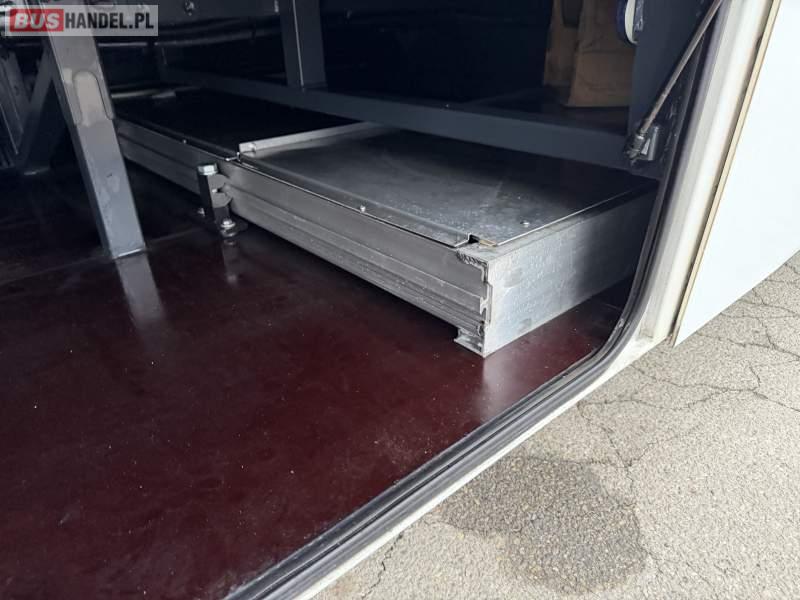 : lodówka, fotele odchylane, oświetlenie indywidualne, nawiewy dyszowe, siateczki, ABS, ASR, tempomat, retarder, podnóżki, stoliczki, mikrofon, klimatyzacja, radio, rampa dla inwalidów, regulacja wysokości nadwozia, centralny zamek, podwójne szyby boczne, wspomaganie kierownicy, elektryczne lusterka, DVD, ogrzewanie stacjonarne