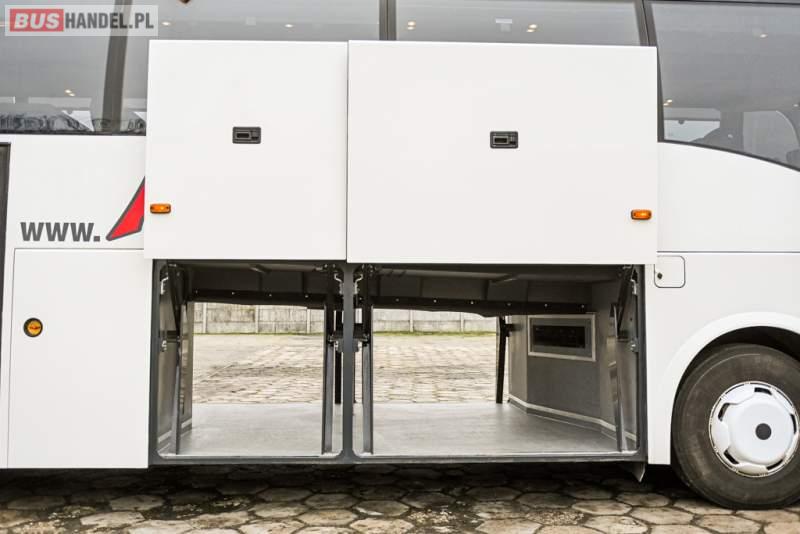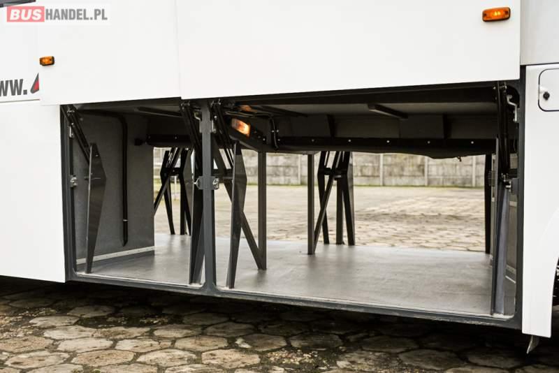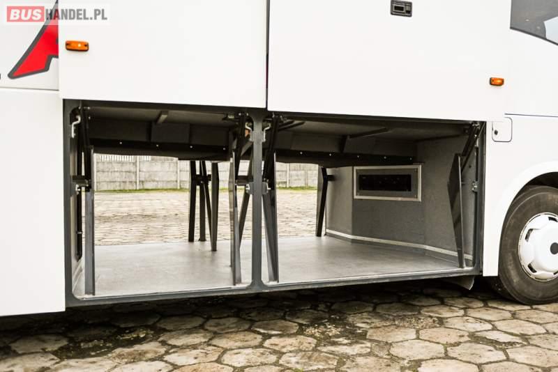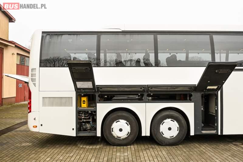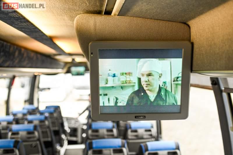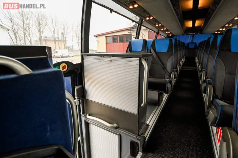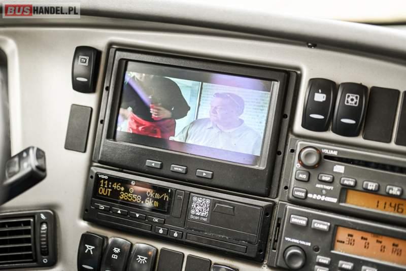 : klimatyzacja, WC, lodówka, caffebar, kabina sypialna, oświetlenie indywidualne, nawiewy dyszowe, podnóżki, stoliczki, siateczki, ABS, ASR, tempomat, retarder, telefon, CD, mikrofon, radio, fotele odchylane i rozsuwane, wyświetlacz matrix, sejf, regulacja wysokości nadwozia, centralny zamek, podwójne szyby boczne, wspomaganie kierownicy, elektryczne lusterka, ogrzewanie stacjonarne, DVD, ESP