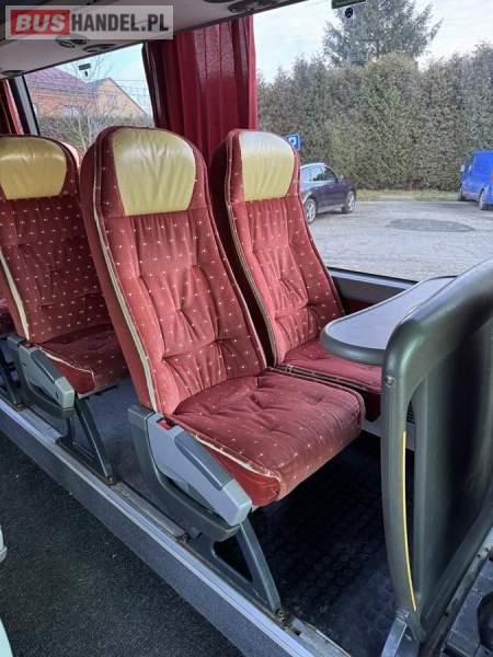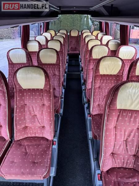 : lodówka, fotele odchylane, oświetlenie indywidualne, nawiewy dyszowe, siateczki, ABS, ASR, tempomat, retarder, podnóżki, stoliczki, mikrofon, klimatyzacja, radio, centralny zamek, podwójne szyby boczne, wspomaganie kierownicy, elektryczne lusterka, ogrzewanie stacjonarne