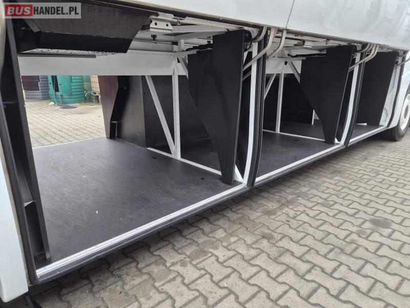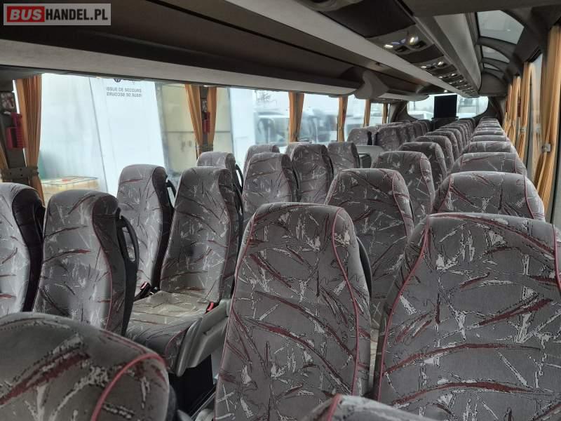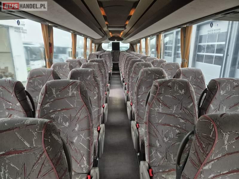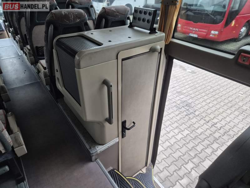 : video, WC, lodówka, caffebar, fotele odchylane, oświetlenie indywidualne, siateczki, ABS, tempomat, retarder, podnóżki, klimatyzacja, radio, regulacja wysokości nadwozia, centralny zamek, podwójne szyby boczne, wspomaganie kierownicy, elektryczne lusterka, DVD, ogrzewanie stacjonarne