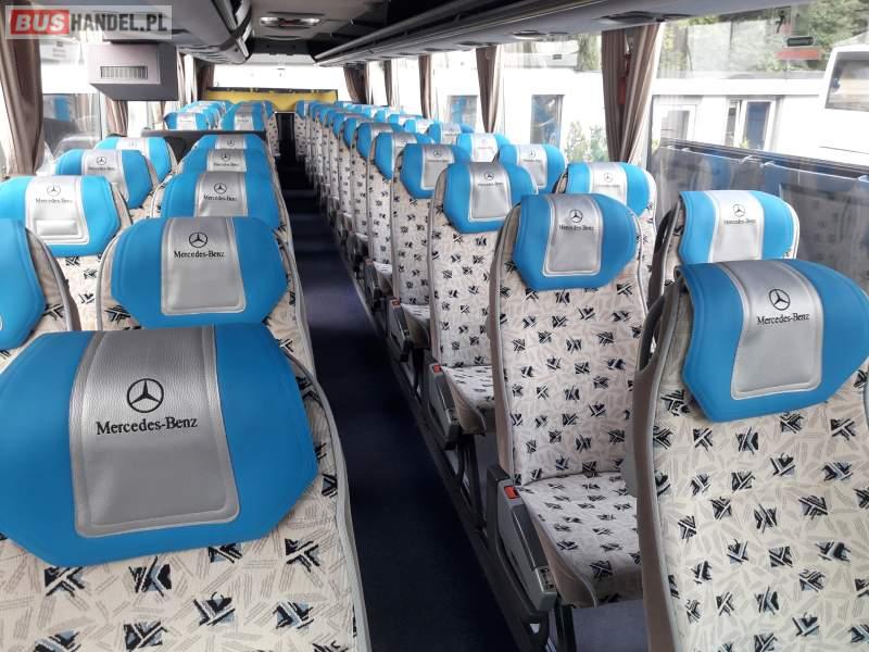 : klimatyzacja, video, WC, lodówka, caffebar, kabina sypialna, oświetlenie indywidualne, nawiewy dyszowe, fotele odchylane, podnóżki, stoliczki, siateczki, ABS, ASR, tempomat, retarder, nawigacja, CD, mikrofon, radio, sejf, regulacja wysokości nadwozia, centralny zamek, podwójne szyby boczne, aluminiowe felgi, ogrzewanie stacjonarne, DVD, ESP