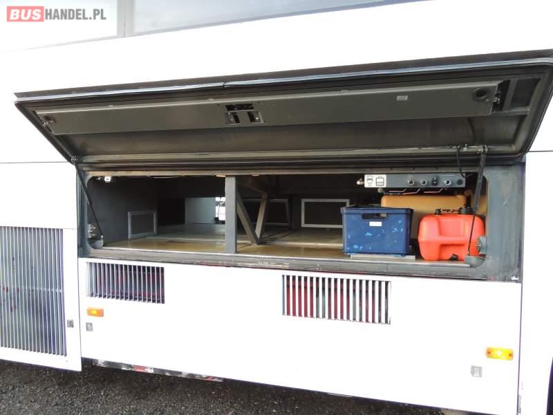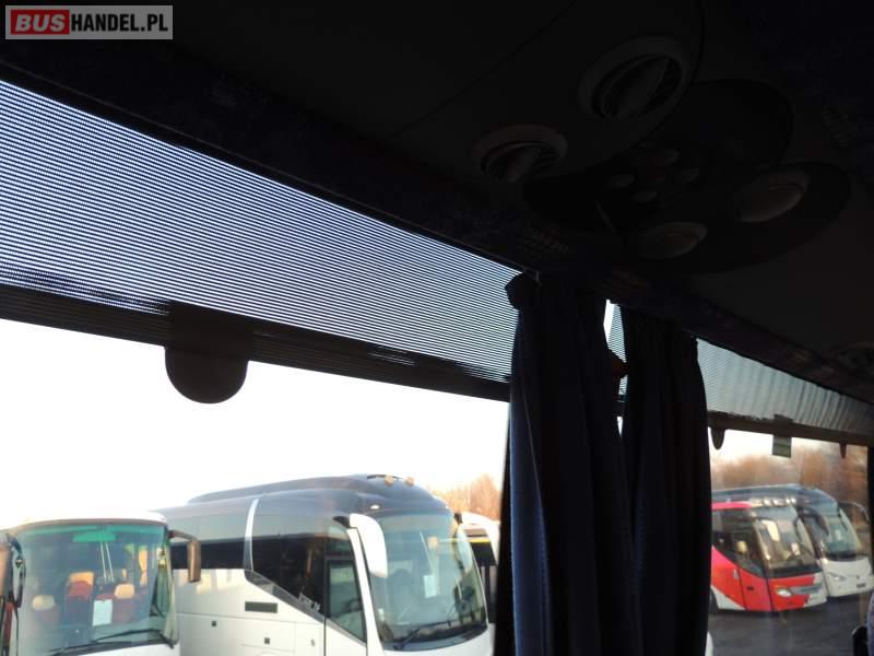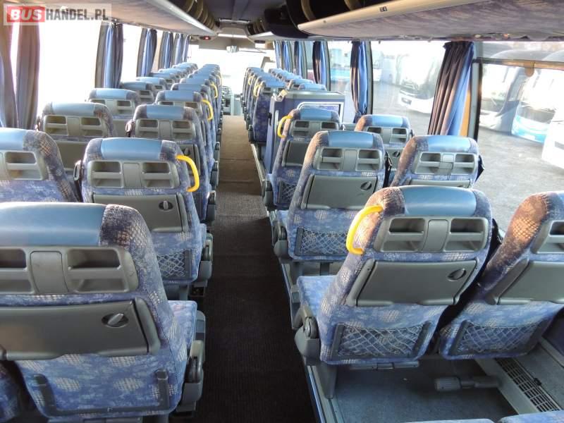 : WC, lodówka, oświetlenie indywidualne, nawiewy dyszowe, ABS, ASR, tempomat, retarder, klimatyzacja, radio, regulacja wysokości nadwozia, centralny zamek, podwójne szyby boczne, wspomaganie kierownicy, elektryczne lusterka, fotele odchylane i rozsuwane, ogrzewanie stacjonarne