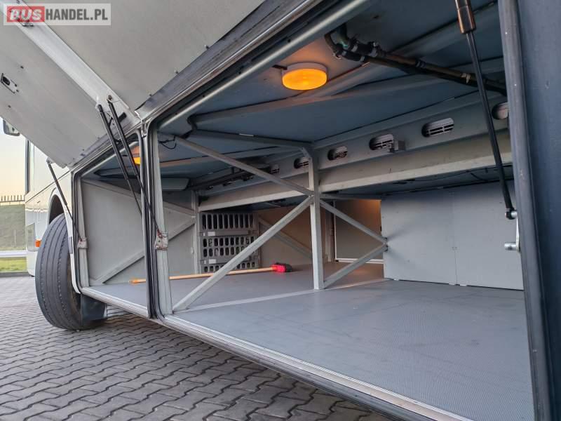 : WC, lodówka, caffebar, oświetlenie indywidualne, nawiewy dyszowe, siateczki, ABS, retarder, CD, podnóżki, mikrofon, klimatyzacja, radio, podwójne szyby boczne, wspomaganie kierownicy, fotele odchylane i rozsuwane, DVD, ESP