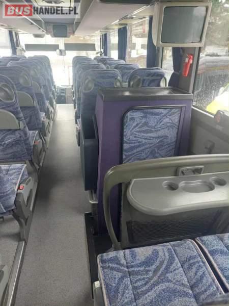 : klimatyzacja, video, WC, lodówka, caffebar, kabina sypialna, oświetlenie indywidualne, fotele nieodchylane, podnóżki, stoliczki, siateczki, ABS, ASR, tempomat, retarder, telefon, nawigacja, CD, mikrofon, radio, kuchenka mikrofalowa, wyświetlacz matrix, sejf, regulacja wysokości nadwozia, centralny zamek, podwójne szyby boczne, wspomaganie kierownicy, elektryczne lusterka, ogrzewanie stacjonarne, DVD, ESP