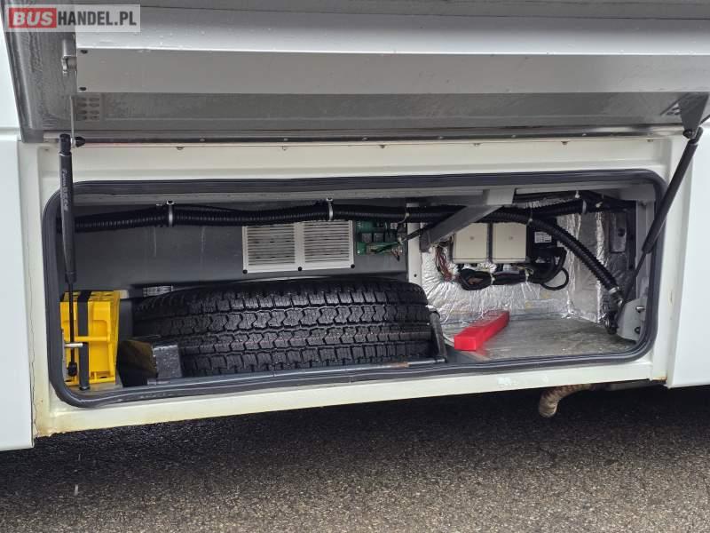 : oświetlenie indywidualne, nawiewy dyszowe, siateczki, ABS, ASR, tempomat, retarder, podnóżki, stoliczki, klimatyzacja, radio, wyświetlacz matrix, rampa dla inwalidów, regulacja wysokości nadwozia, centralny zamek, podwójne szyby boczne, wspomaganie kierownicy, elektryczne lusterka, ogrzewanie stacjonarne