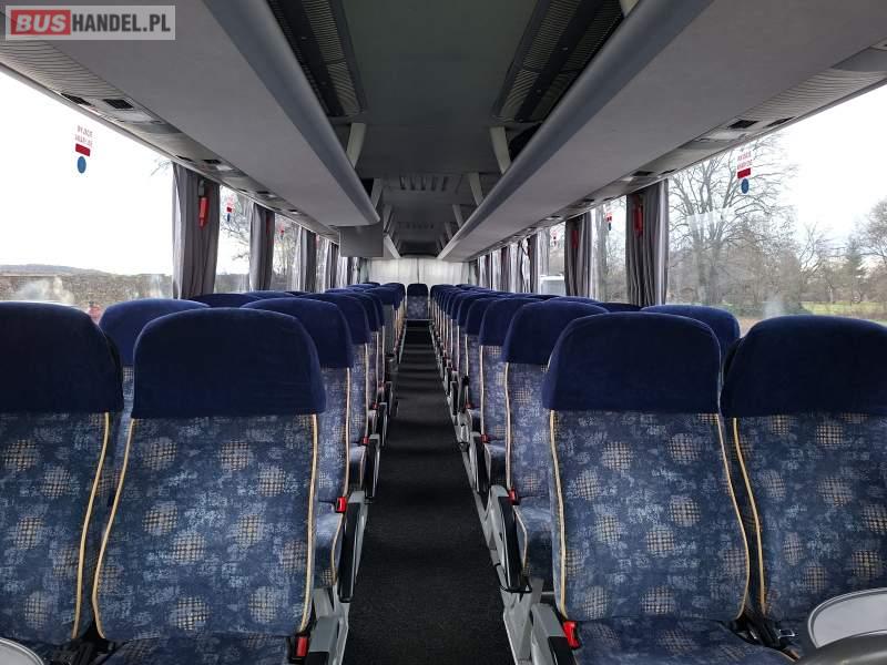 : klimatyzacja, WC, lodówka, caffebar, kabina sypialna, oświetlenie indywidualne, nawiewy dyszowe, podnóżki, stoliczki, siateczki, ABS, ASR, tempomat, retarder, CD, mikrofon, radio, fotele odchylane i rozsuwane, sejf, regulacja wysokości nadwozia, podwójne szyby boczne, wspomaganie kierownicy, elektryczne lusterka, ogrzewanie stacjonarne, DVD, hak holowniczy, ESP