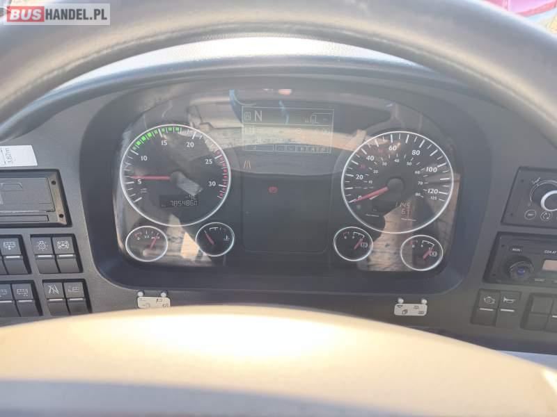 : klimatyzacja, video, WC, lodówka, caffebar, kabina sypialna, nawiewy dyszowe, podnóżki, stoliczki, siateczki, ABS, ASR, tempomat, retarder, nawigacja, CD, mikrofon, radio, fotele odchylane i rozsuwane, regulacja wysokości nadwozia, centralny zamek, podwójne szyby boczne, wspomaganie kierownicy, elektryczne lusterka, ogrzewanie stacjonarne, DVD, hak holowniczy, ESP