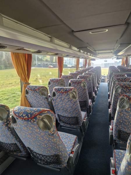 : video, WC, lodówka, kabina sypialna, fotele odchylane, oświetlenie indywidualne, nawiewy dyszowe, siateczki, ABS, ASR, tempomat, retarder, CD, podnóżki, mikrofon, klimatyzacja, radio, regulacja wysokości nadwozia, podwójne szyby boczne, wspomaganie kierownicy, elektryczne lusterka, aluminiowe felgi, fotele odchylane i rozsuwane, DVD, ogrzewanie stacjonarne, ESP