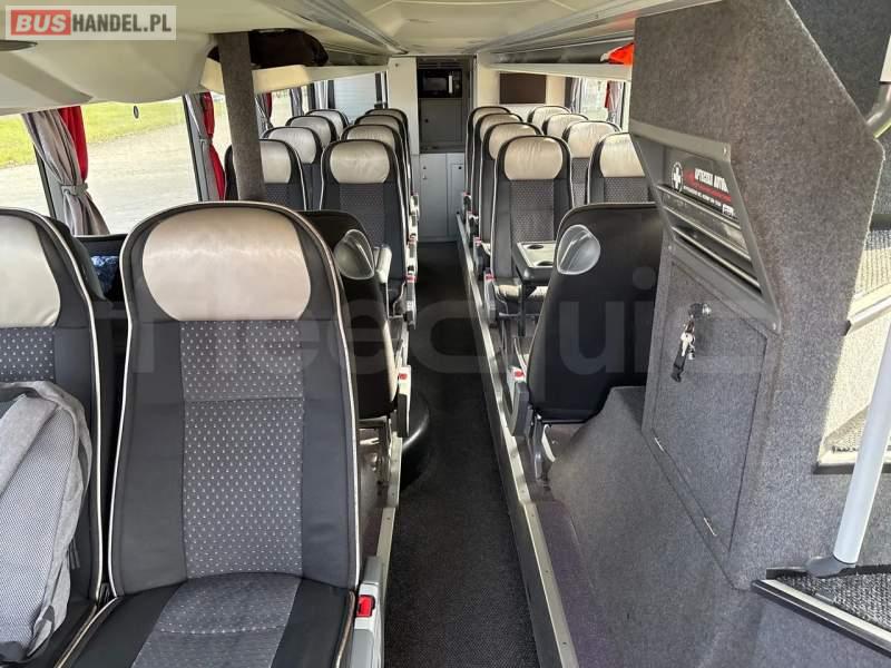 : WC, lodówka, fotele odchylane, ABS, ASR, retarder, CD, podnóżki, stoliczki, mikrofon, klimatyzacja, fotele odchylane i rozsuwane, DVD, ogrzewanie stacjonarne
