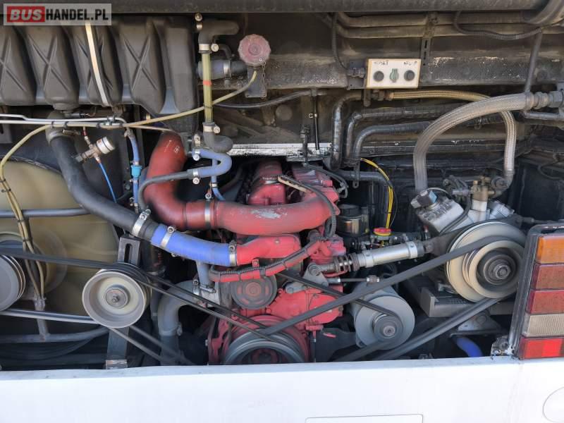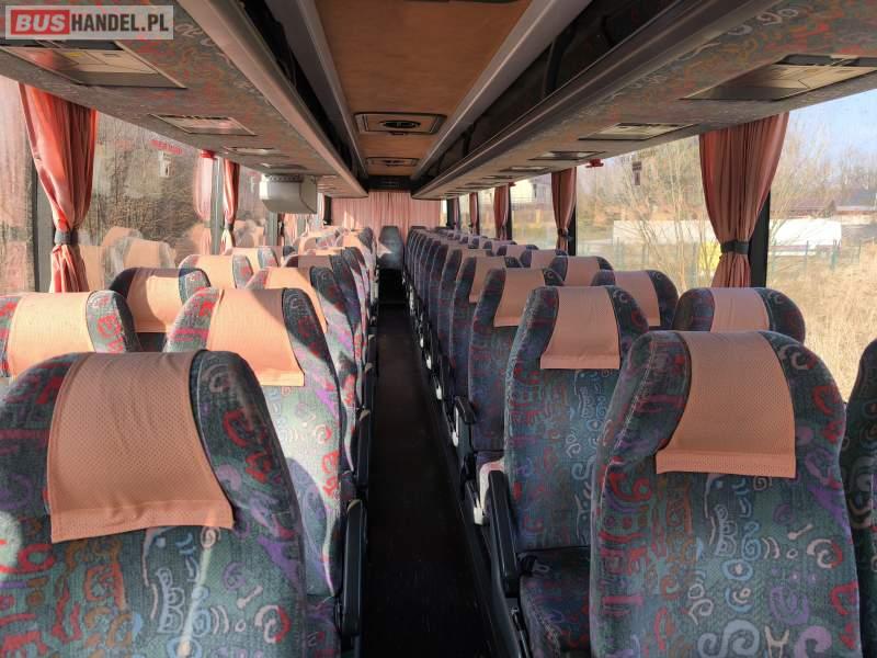 : klimatyzacja, video, WC, lodówka, caffebar, kabina sypialna, oświetlenie indywidualne, nawiewy dyszowe, fotele odchylane, podnóżki, stoliczki, siateczki, ABS, ASR, tempomat, CD, mikrofon, radio, regulacja wysokości nadwozia, centralny zamek, podwójne szyby boczne, wspomaganie kierownicy, elektryczne lusterka, ogrzewanie stacjonarne, DVD, ESP