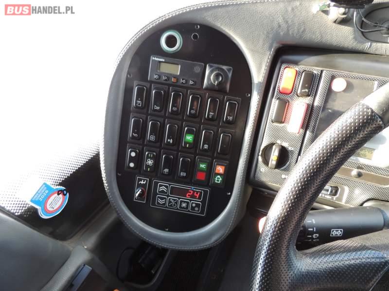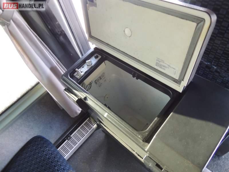 : video, lodówka, oświetlenie indywidualne, nawiewy dyszowe, siateczki, ABS, ASR, tempomat, retarder, CD, stoliczki, mikrofon, klimatyzacja, radio, regulacja wysokości nadwozia, centralny zamek, podwójne szyby boczne, wspomaganie kierownicy, elektryczne lusterka, fotele odchylane i rozsuwane, DVD, ogrzewanie stacjonarne