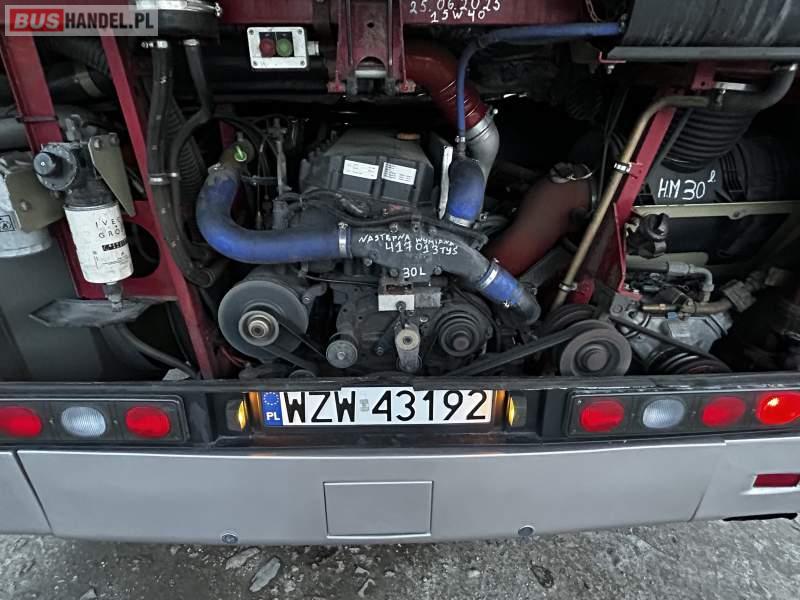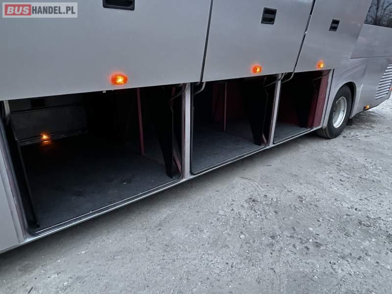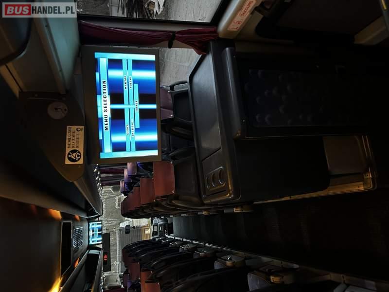 : video, WC, lodówka, fotele odchylane, oświetlenie indywidualne, nawiewy dyszowe, siateczki, ABS, ASR, tempomat, retarder, nawigacja, CD, podnóżki, stoliczki, mikrofon, klimatyzacja, radio, regulacja wysokości nadwozia, centralny zamek, podwójne szyby boczne, wspomaganie kierownicy, elektryczne lusterka, aluminiowe felgi, DVD, ogrzewanie stacjonarne