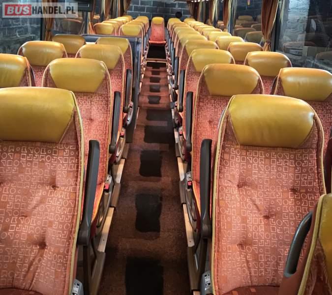 : klimatyzacja, WC, lodówka, caffebar, oświetlenie indywidualne, nawiewy dyszowe, podnóżki, stoliczki, siateczki, ABS, ASR, tempomat, retarder, CD, mikrofon, radio, fotele odchylane i rozsuwane, sejf, regulacja wysokości nadwozia, centralny zamek, podwójne szyby boczne, wspomaganie kierownicy, elektryczne lusterka, ogrzewanie stacjonarne, DVD, ESP