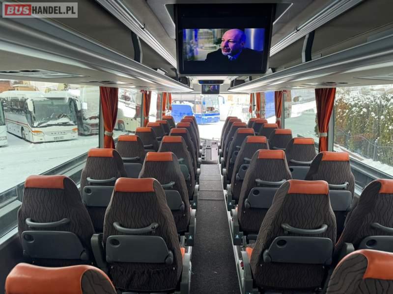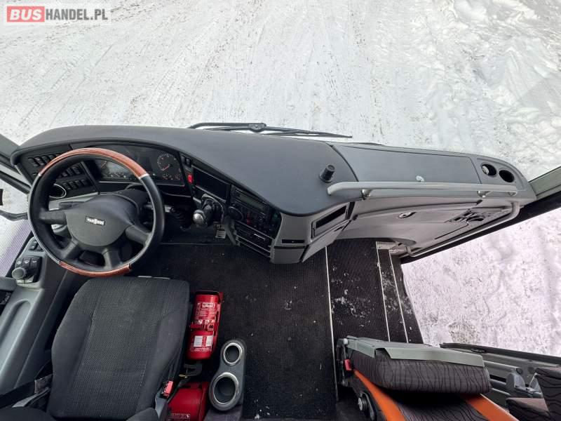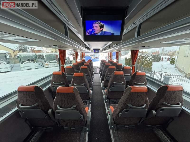 : video, WC, lodówka, kabina sypialna, fotele odchylane, oświetlenie indywidualne, nawiewy dyszowe, siateczki, ABS, ASR, tempomat, retarder, CD, podnóżki, stoliczki, mikrofon, klimatyzacja, radio, regulacja wysokości nadwozia, centralny zamek, podwójne szyby boczne, wspomaganie kierownicy, elektryczne lusterka, DVD, ogrzewanie stacjonarne, ESP