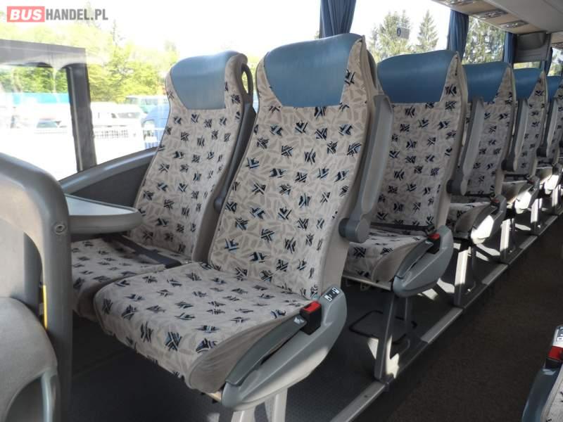: klimatyzacja, video, WC, lodówka, caffebar, kabina sypialna, oświetlenie indywidualne, nawiewy dyszowe, fotele odchylane, fotele nieodchylane, podnóżki, stoliczki, siateczki, ABS, ASR, tempomat, retarder, telefon, nawigacja, mikrofon, radio, fotele odchylane i rozsuwane, kuchenka mikrofalowa, rampa dla inwalidów, sejf, regulacja wysokości nadwozia, centralny zamek, podwójne szyby boczne, wspomaganie kierownicy, aluminiowe felgi, elektryczne lusterka, ogrzewanie stacjonarne, DVD, ESP
