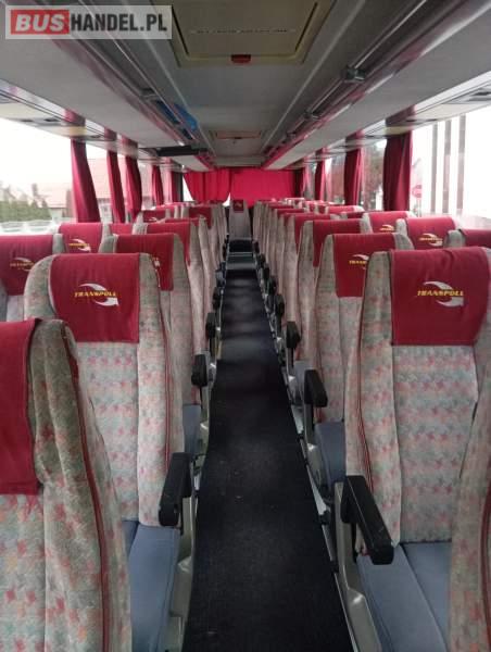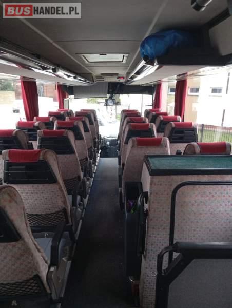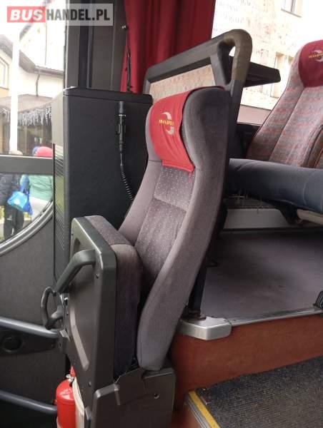 : video, WC, lodówka, kabina sypialna, fotele odchylane, oświetlenie indywidualne, nawiewy dyszowe, ABS, tempomat, retarder, nawigacja, CD, podnóżki, mikrofon, klimatyzacja, radio, regulacja wysokości nadwozia, podwójne szyby boczne, wspomaganie kierownicy, elektryczne lusterka, DVD, ogrzewanie stacjonarne, ESP