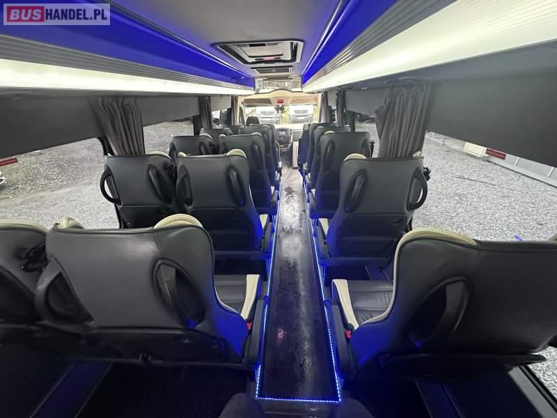 : video, lodówka, oświetlenie indywidualne, ABS, ASR, tempomat, nawigacja, CD, podnóżki, mikrofon, klimatyzacja, radio, podwójne szyby boczne, aluminiowe felgi, fotele odchylane i rozsuwane, DVD, ogrzewanie stacjonarne, ESP