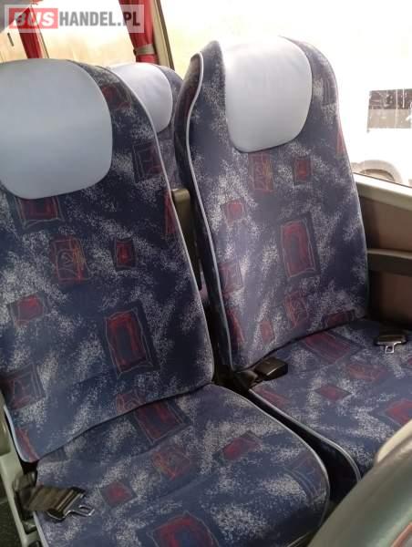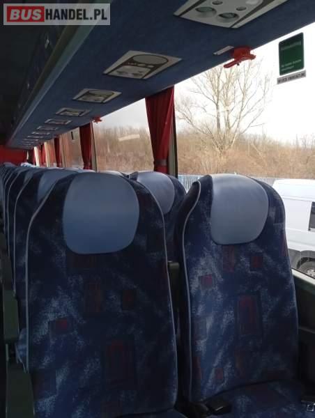 : video, WC, lodówka, kabina sypialna, fotele odchylane, oświetlenie indywidualne, siateczki, ABS, tempomat, retarder, CD, podnóżki, stoliczki, mikrofon, klimatyzacja, radio, regulacja wysokości nadwozia, podwójne szyby boczne, wspomaganie kierownicy, DVD, ogrzewanie stacjonarne