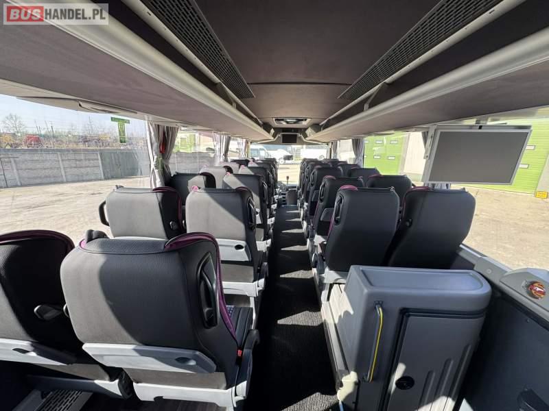 : klimatyzacja, video, WC, lodówka, kabina sypialna, oświetlenie indywidualne, nawiewy dyszowe, podnóżki, stoliczki, ABS, ASR, tempomat, retarder, CD, mikrofon, radio, fotele odchylane i rozsuwane, regulacja wysokości nadwozia, centralny zamek, podwójne szyby boczne, wspomaganie kierownicy, aluminiowe felgi, elektryczne lusterka, ogrzewanie stacjonarne, DVD, ESP